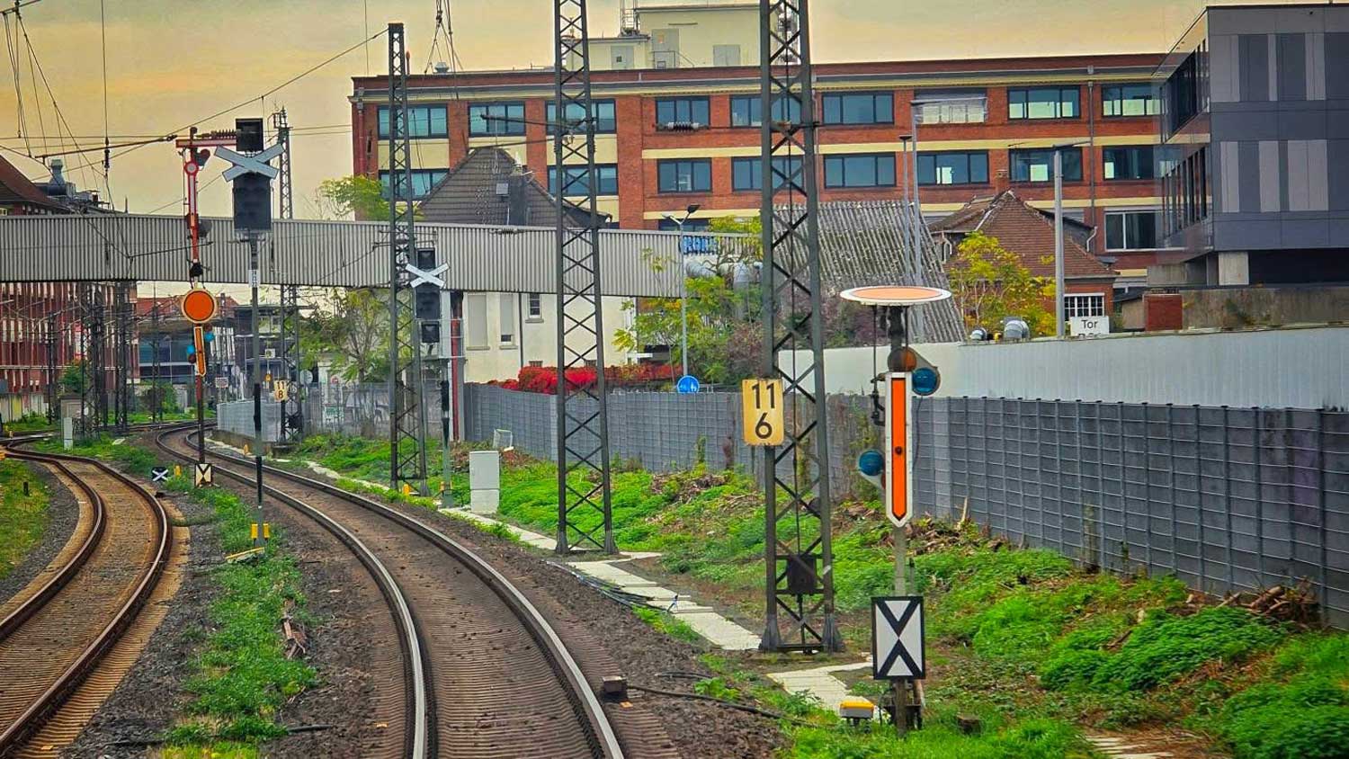Im Hintergrund das Nordwestportal des Tunnels Mainz Hbf