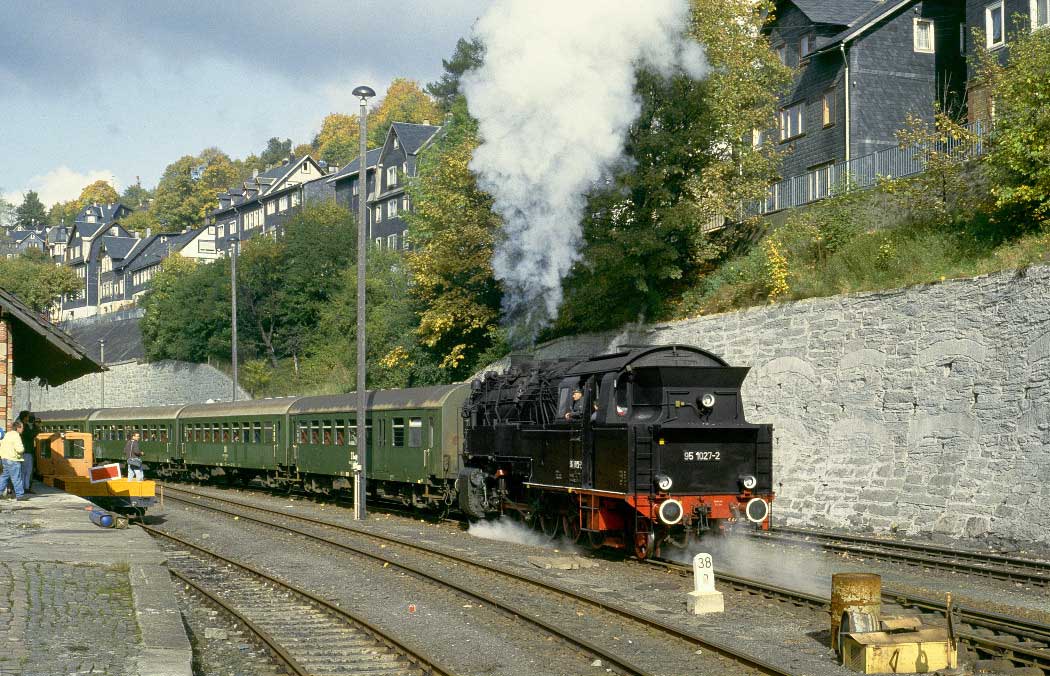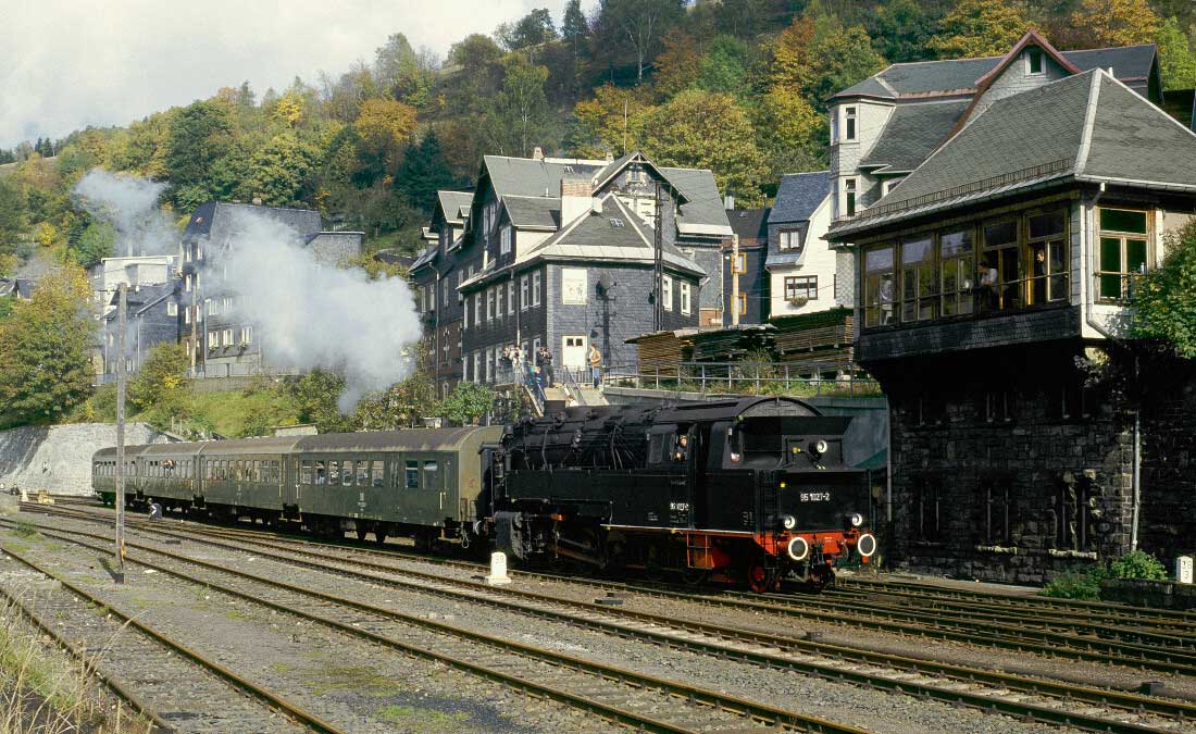 95 1016 bei der Einfahrt in den Bf Lauscha aus Ri Sonneberg
