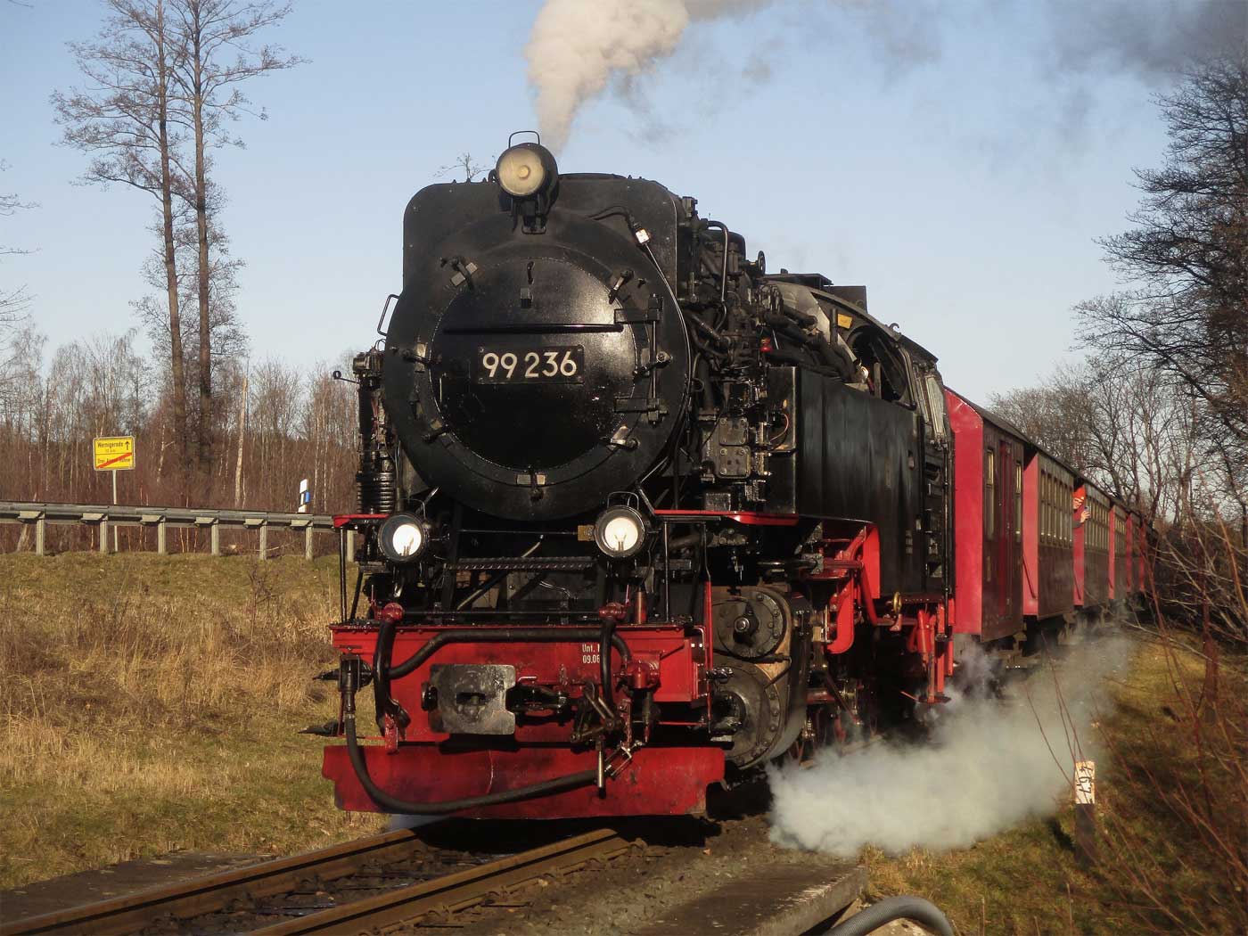 km 6,5 am BÜ Pfarrstieg bei Schierke - 99 236 mit P 8922 (Brocken . Drei Annen Hohne)