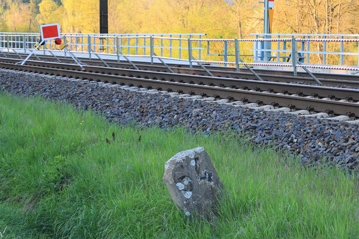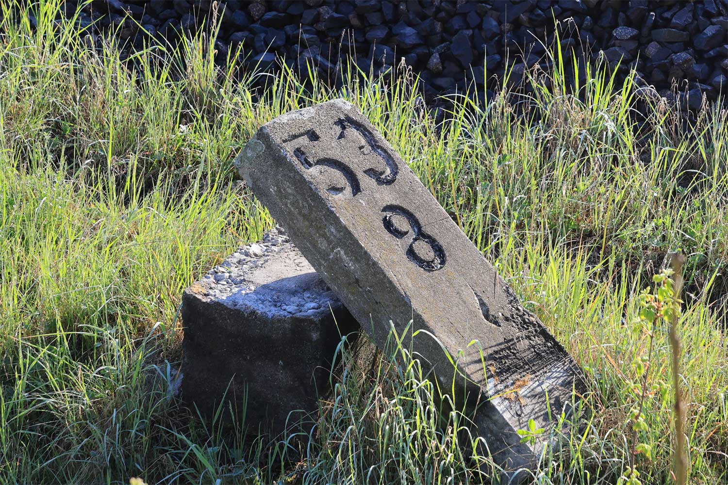 Ursprünglicher Kilometerstein 195,8 steht am Standort km 95,8