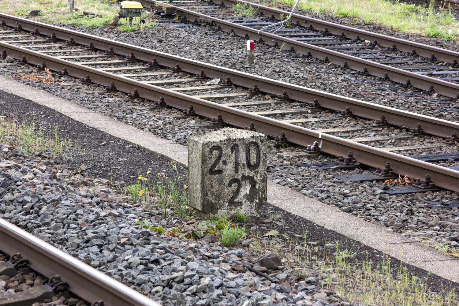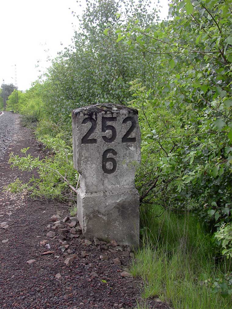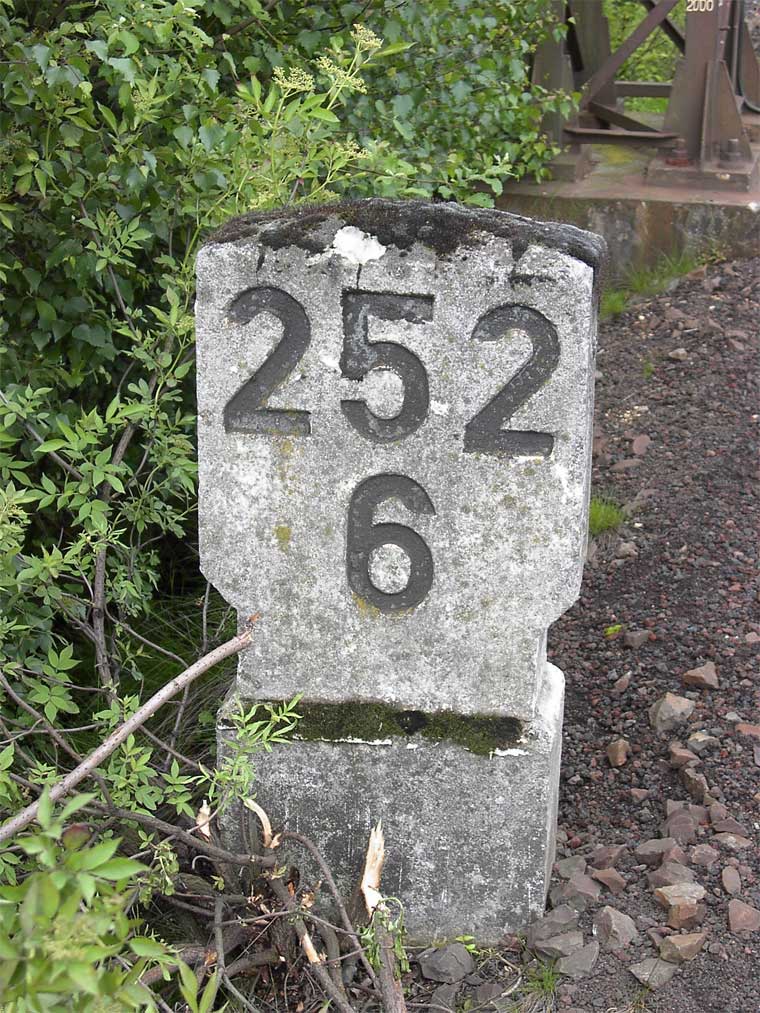 km 252,2 (Tafel) und km 252,3 (Stein, versteckt) in Guxhagen - Detail