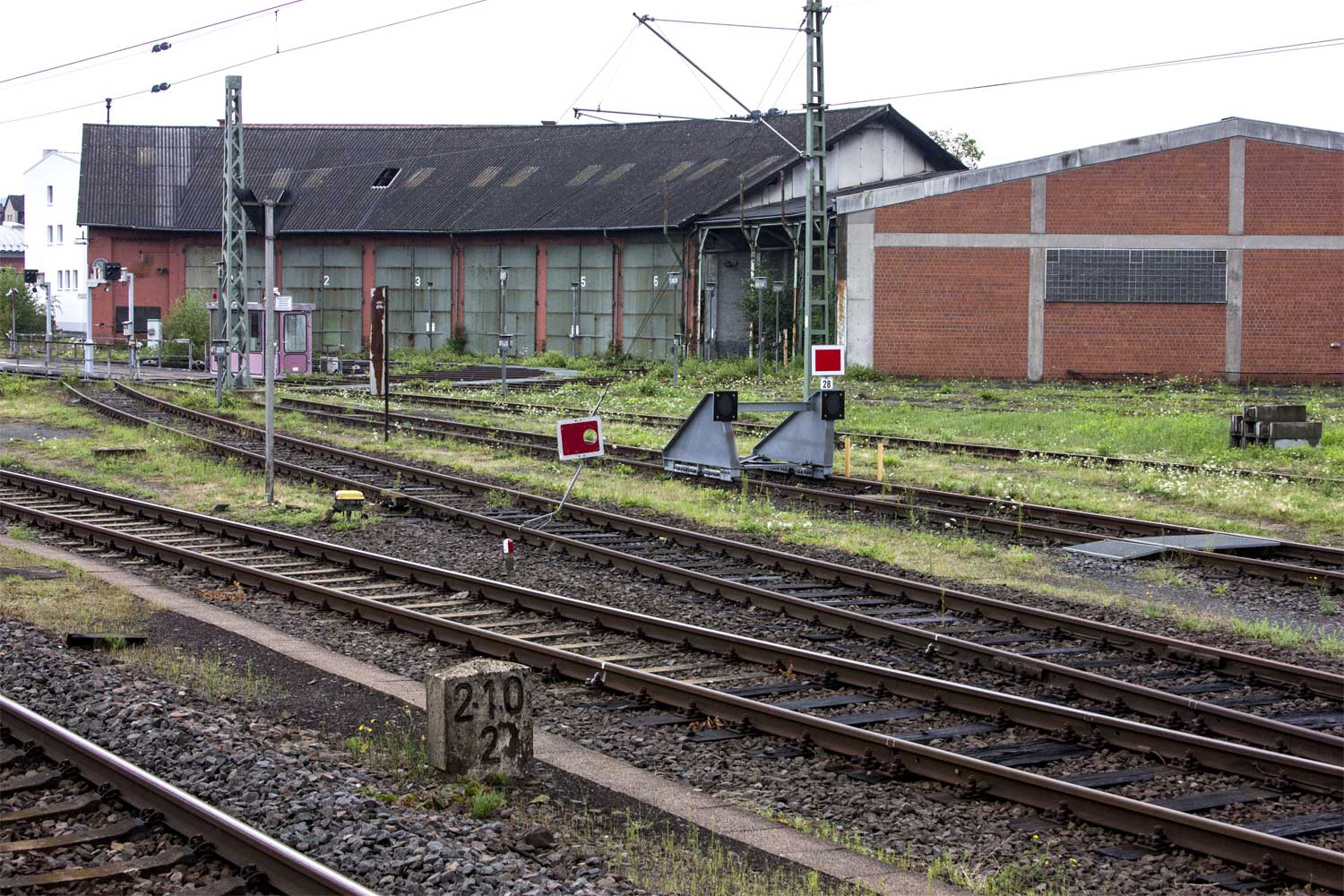 Im Hintergrund an den Weichen endet die Strecke Halle (Saale) Hbf - Guntershausen