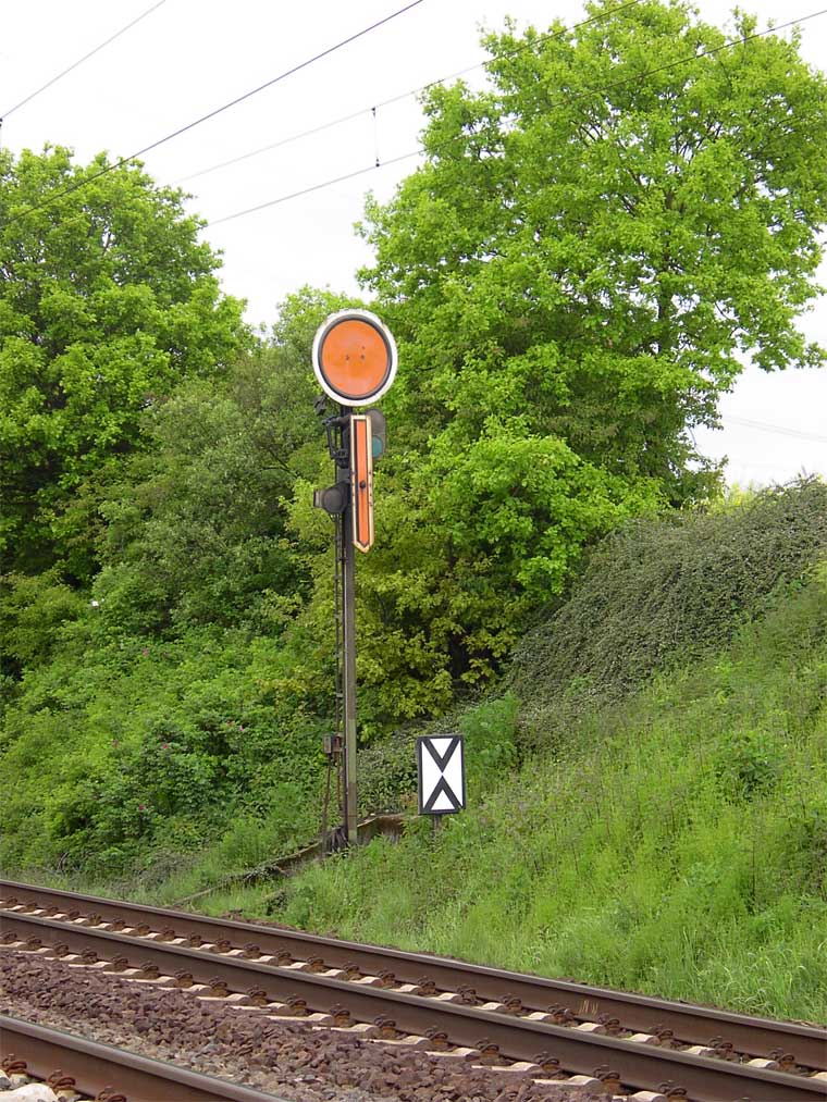 Ne 3 um 180° verdreht am Haltepunkt Guxhagen. Normal sollte dieses Ne2 das Blockvorsignal der Gegenrichtung ankündigen.