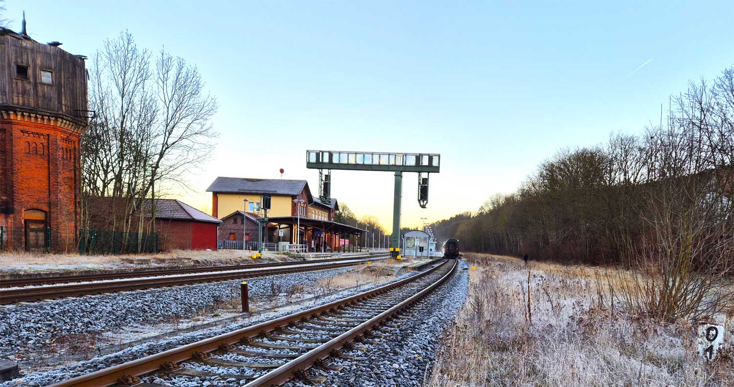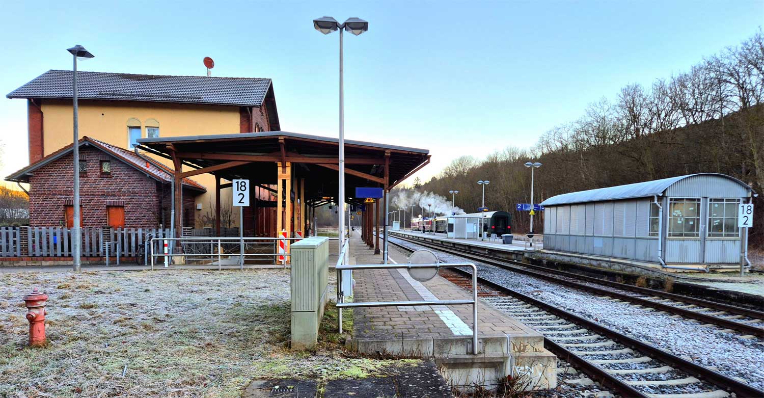 km 64,9 in Rohr - im Hintergrund das alte Bahnhofsgebäude