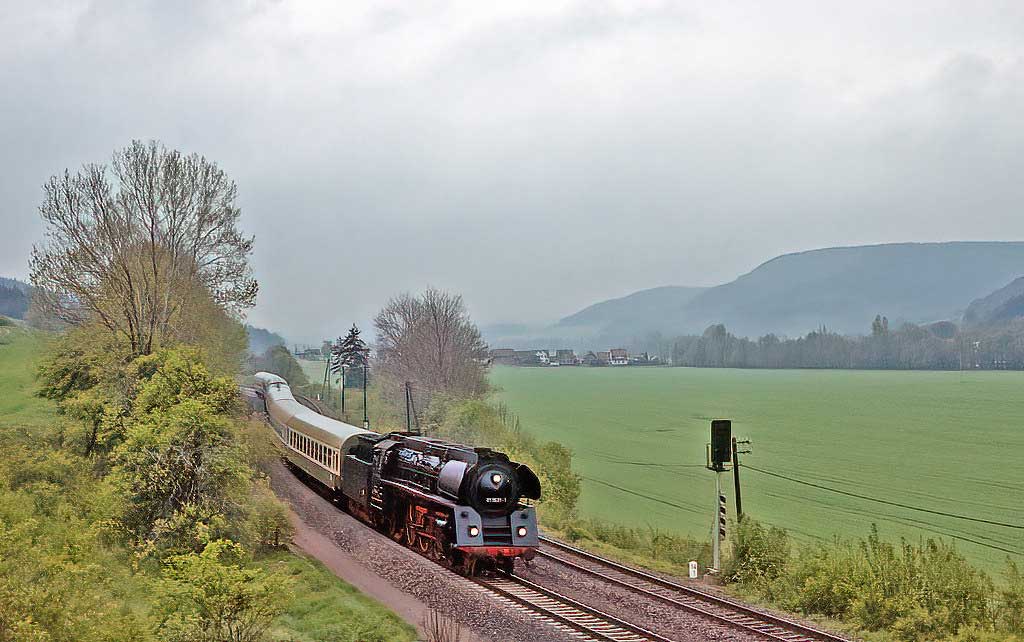 km 62,5 zwischen Dietzhausen und Rohr (Thür) - 18 201am Ende des Sonderzuges aus Ri Meiningen