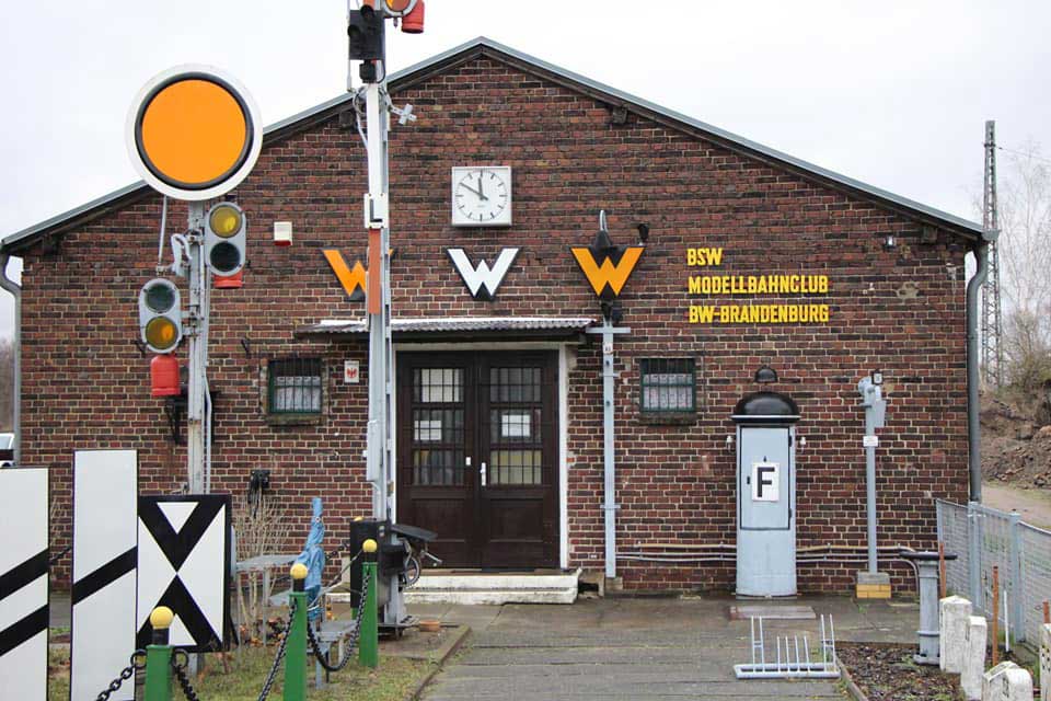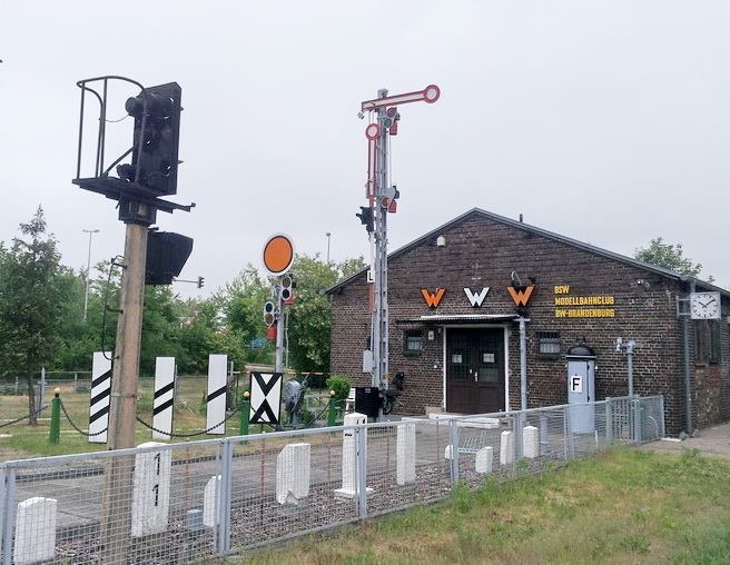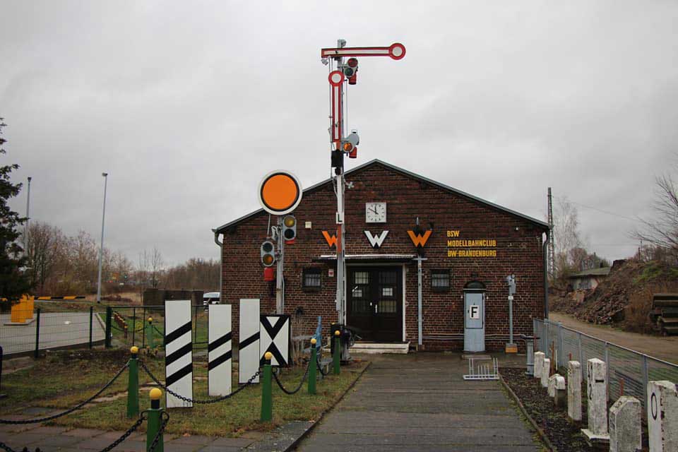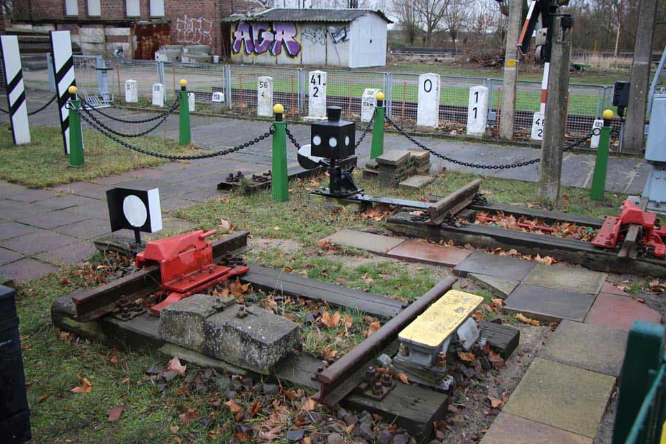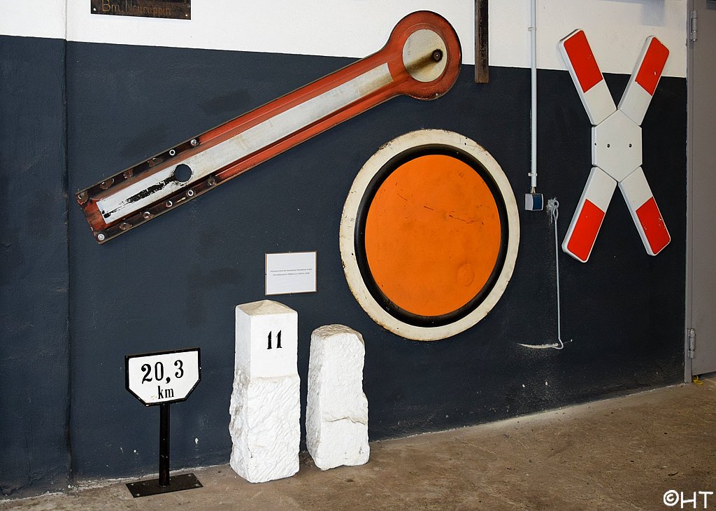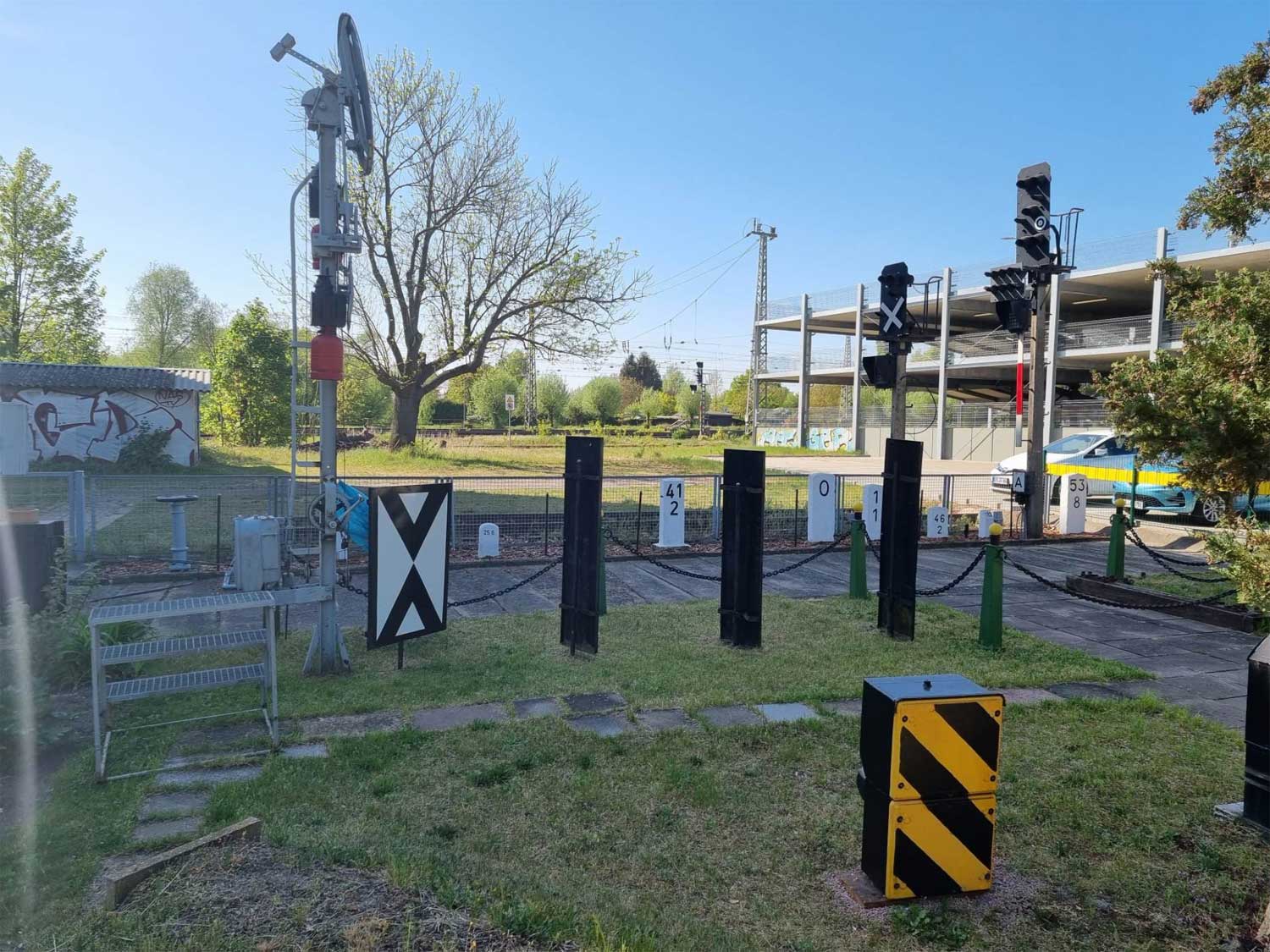 Signalgarten mit vielen Kilometersteinen BSW Modellbahnclub Bw Brandenburg Foto: Martin Heydecke, 25.05.2016
