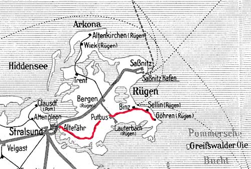Altefähr 0,0 - Putbus 35,27 - Göhren (Rügen) 59,46 (Spurweite 750 mm)