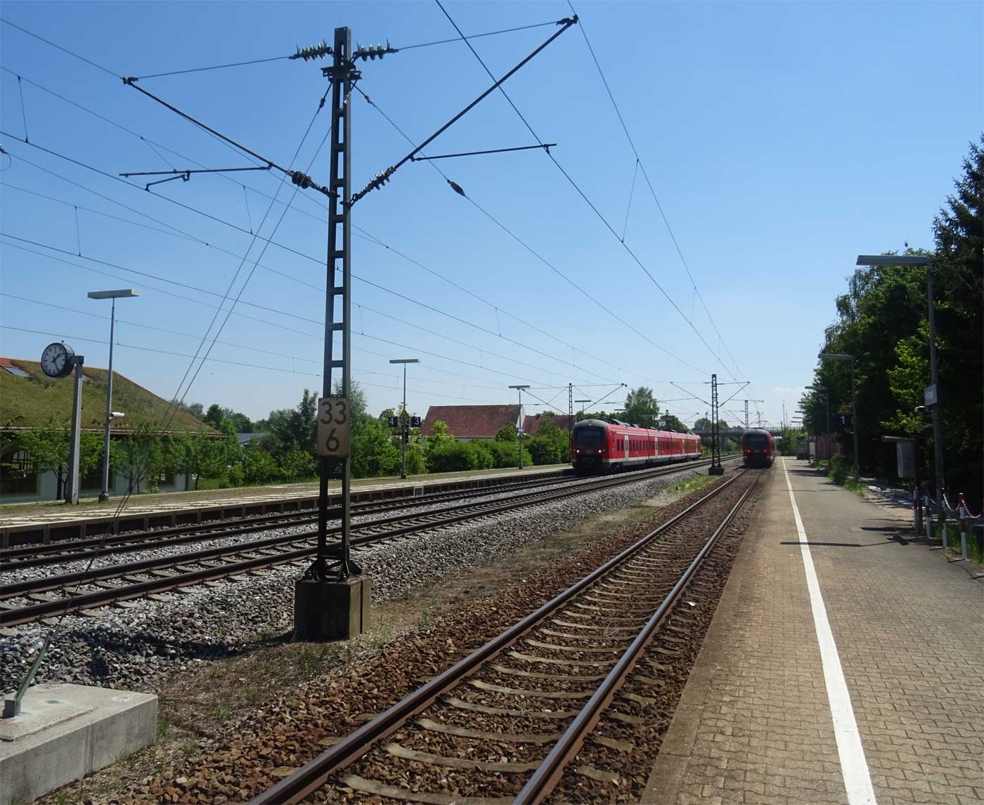 km 33,6 in Mertingen Bf - Blick Richtung Nördlingen