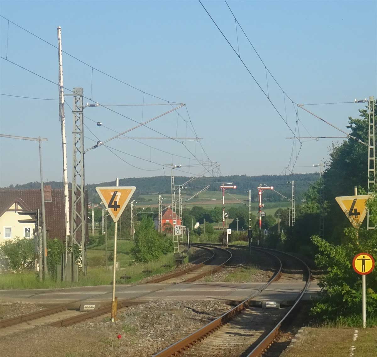 km 33,8 und km 34,0 in Mertingen Bf - Blick Richtung Nördlingen