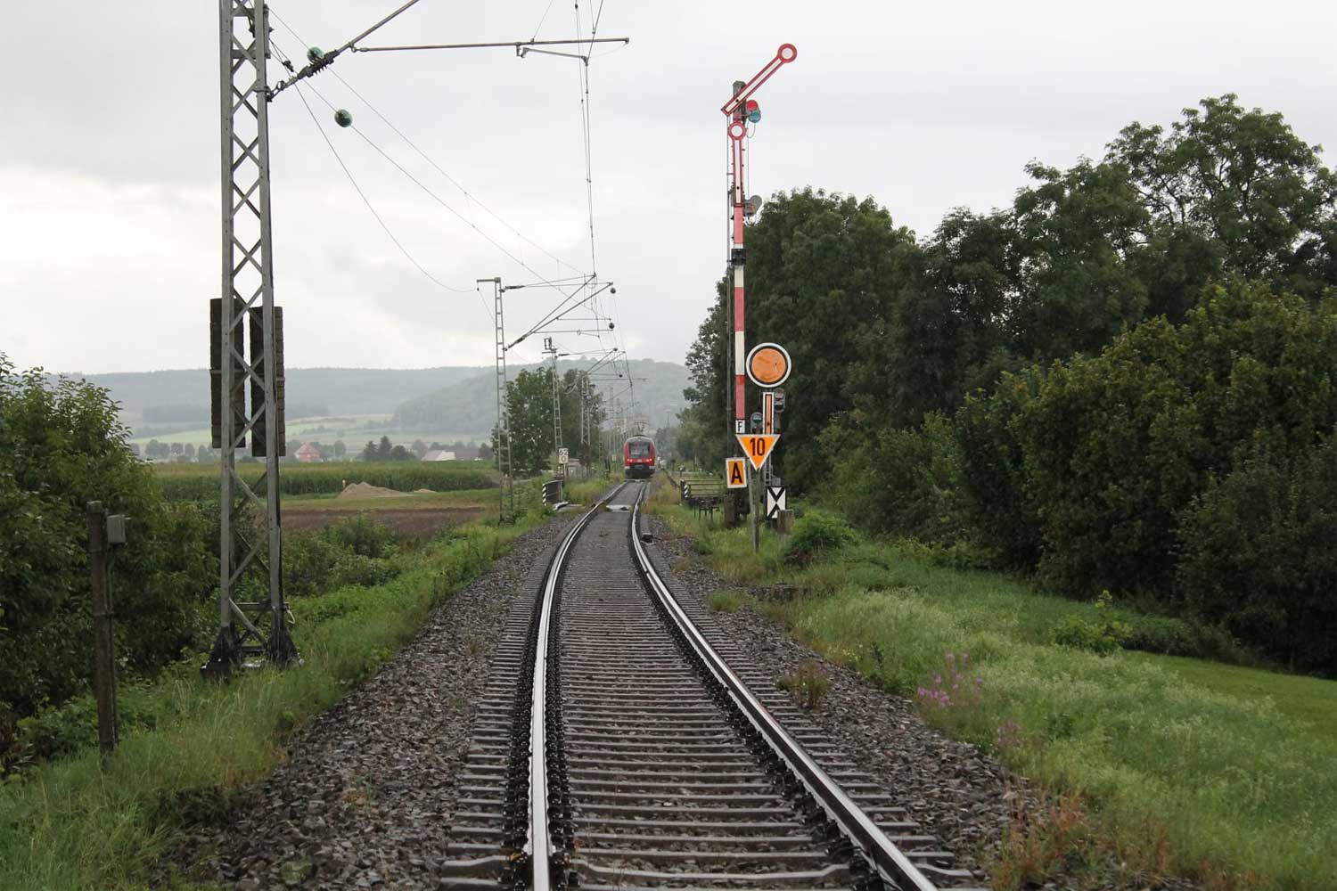 km 33,8 in Mertingen Bf - Blick Richtung Nördlingen