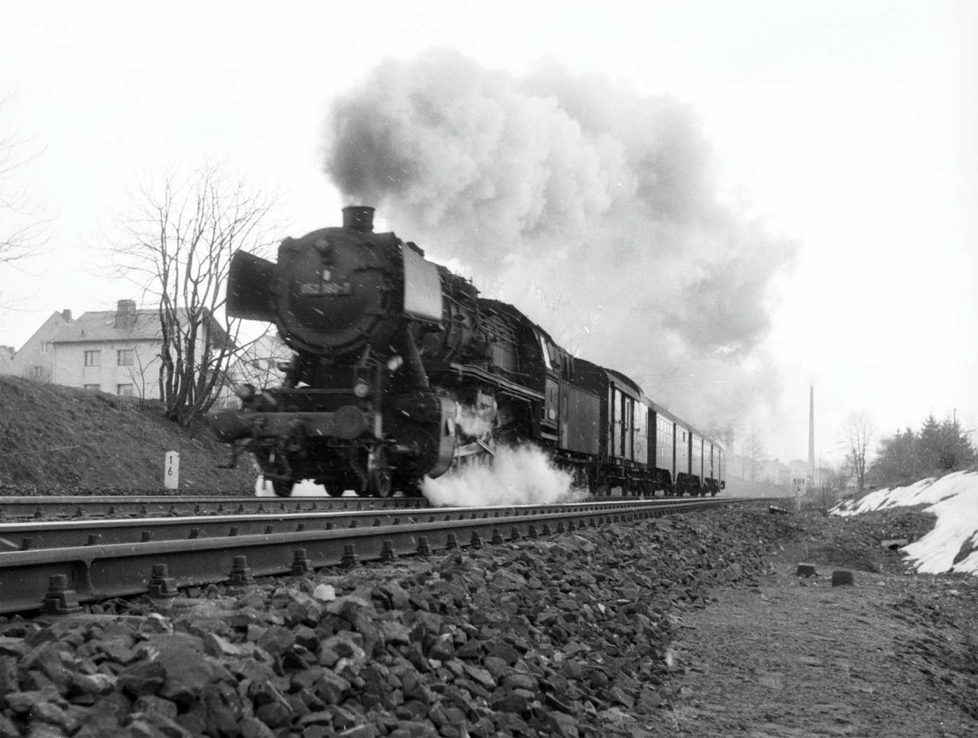 und ganz links ist im qualmigen Dunst gerade noch 052 475 vor dem N 3419 nach Selb Stadt erkennbar.