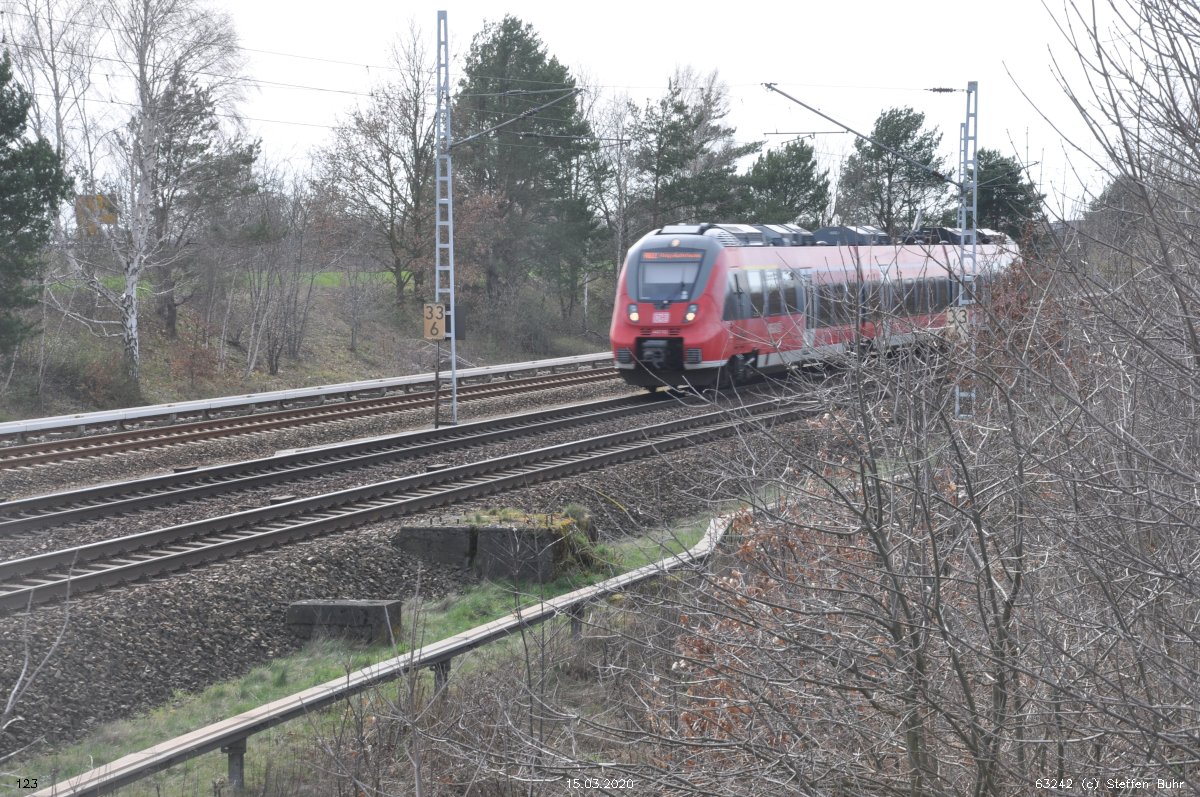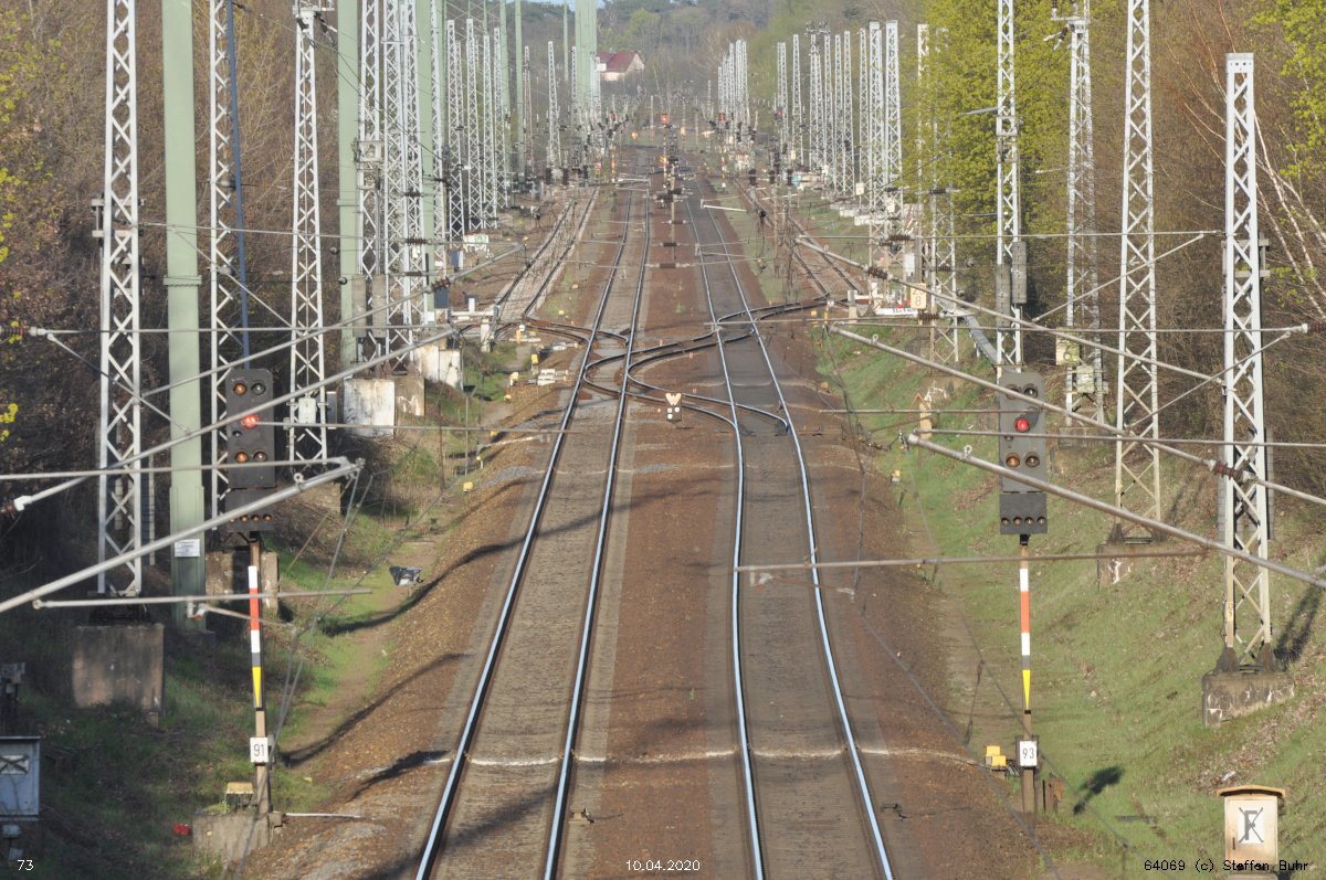 | Abzw. | Verbindungskurve nach Birkenwerder [Strecke Berlin Nordbahnhof (alt) 0,0 - Neustrelitz 98,53 - Neubrandenburg 133,73 - Stralsund 222,64 (kommend)/223,60 (gehend) - Saßnitz 272,72 - Saßnitz Hafen 274,46] | |