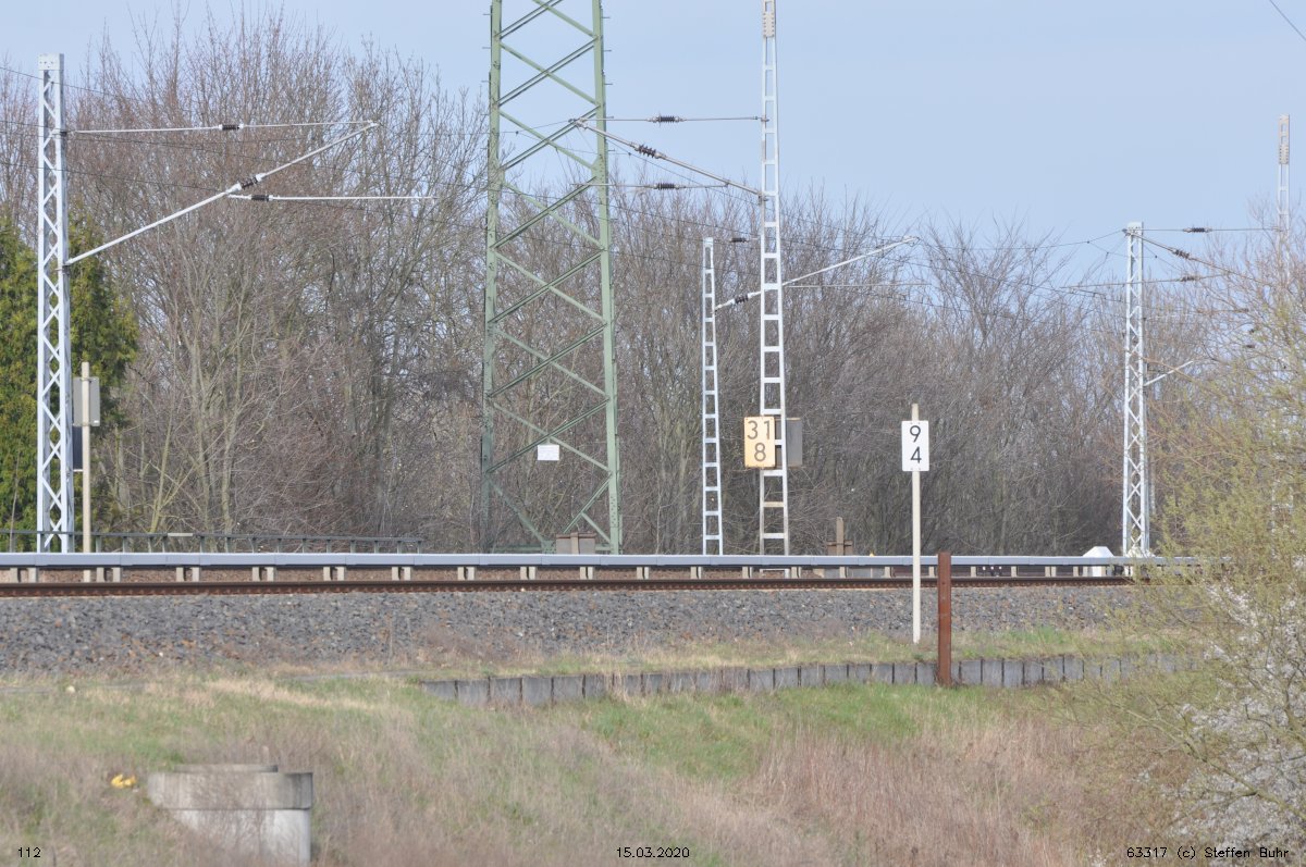 | Elstal/Abzw. Awe | 42,17 | km 77,417 der Strecke Jüterbog 0,0 - Beelitz Stadt 40,01 - Wildpark 58,78 - Wustermark 81,10 - Nauen 90,06 |