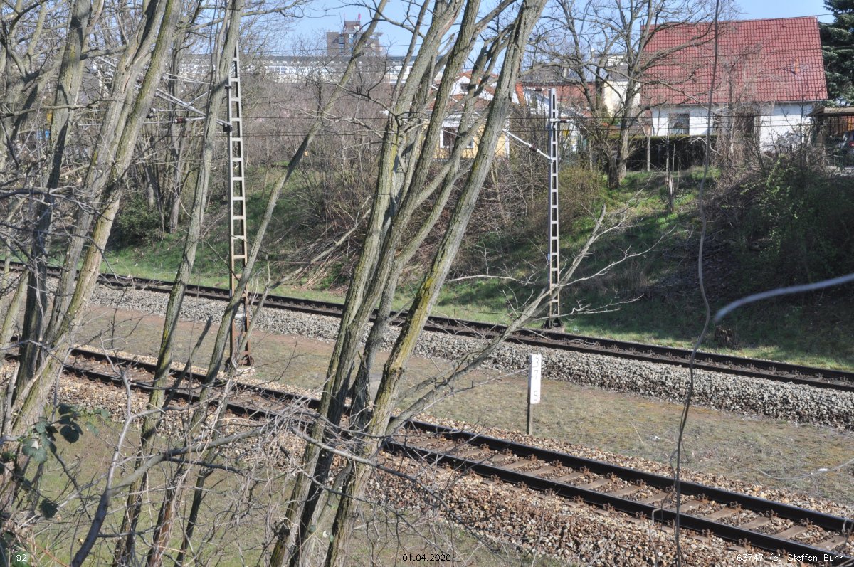 Links noch zu sehen km 0,4 der Strecke Abzw Grünauer Kreuz West - Abzw Grünauer Kreuz Süd (6145 - Gegenrichtungsgleis)