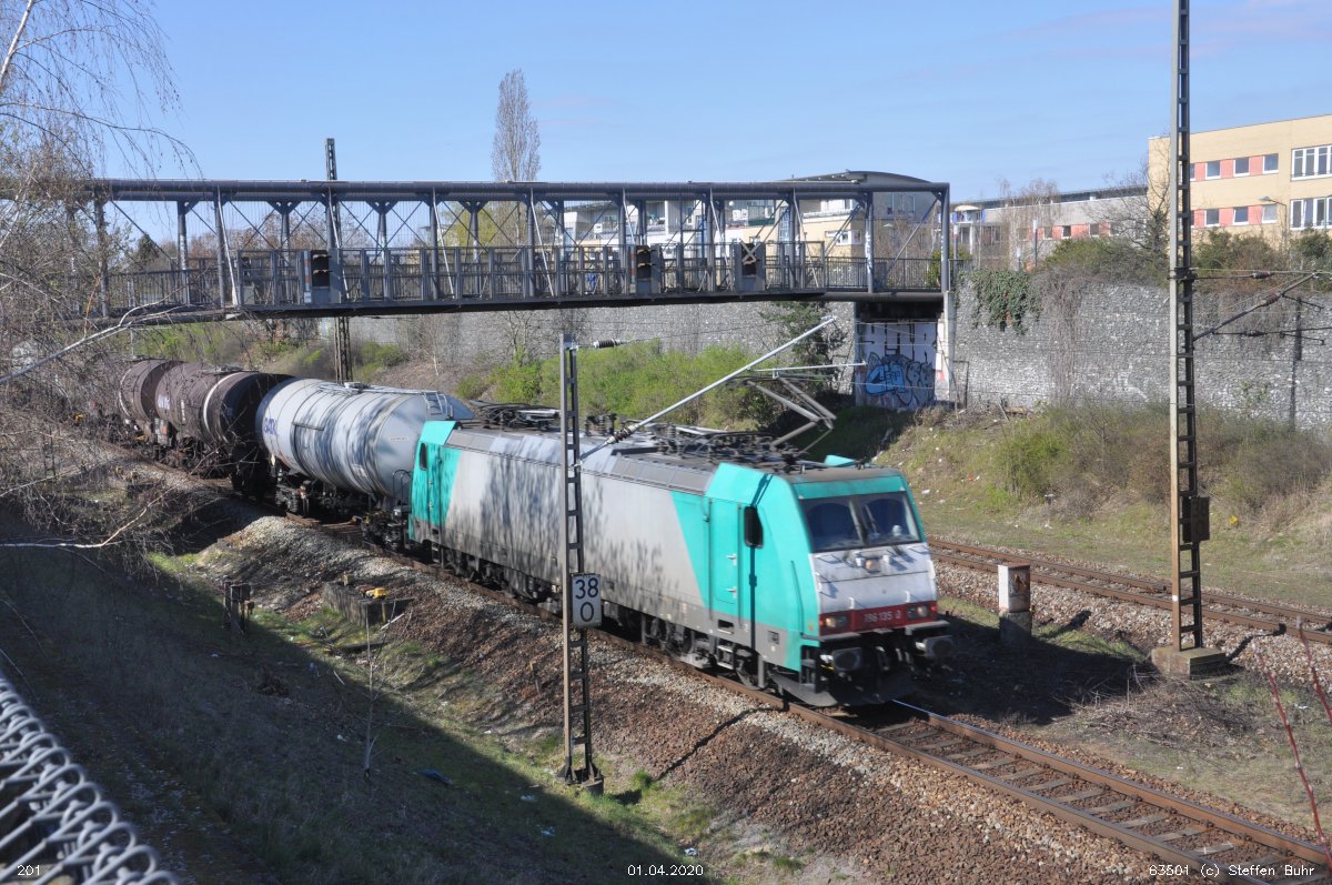 Links noch zu sehen km 1,3 der Strecke Abzw Grünauer Kreuz West - Abzw Grünauer Kreuz Süd (6145 - Richtungsgleis)
