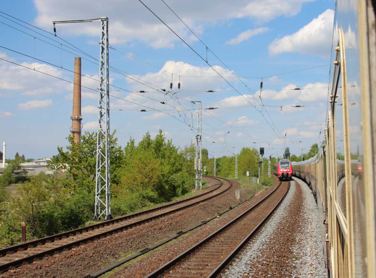 km 38,3 zwischen Zentralflughafen Berlin-Schönefeld und Grünauer Kreuz - 01 1516 mit D 379 "Istropolitan" (Berlin Ostbahnhof - Dresden Hbf - Bratislava)