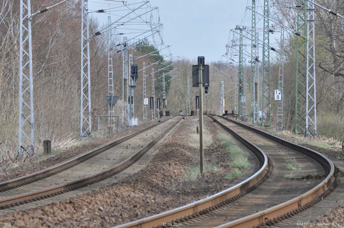 Abzw Grünauer Kreuz West und Abzw Grünauer Kreuz Süd km 11,6 gehört zum Richtungsgleis der Görlitzer Bahn (6142) Foto: Steffen Buhr, 03.04.2020