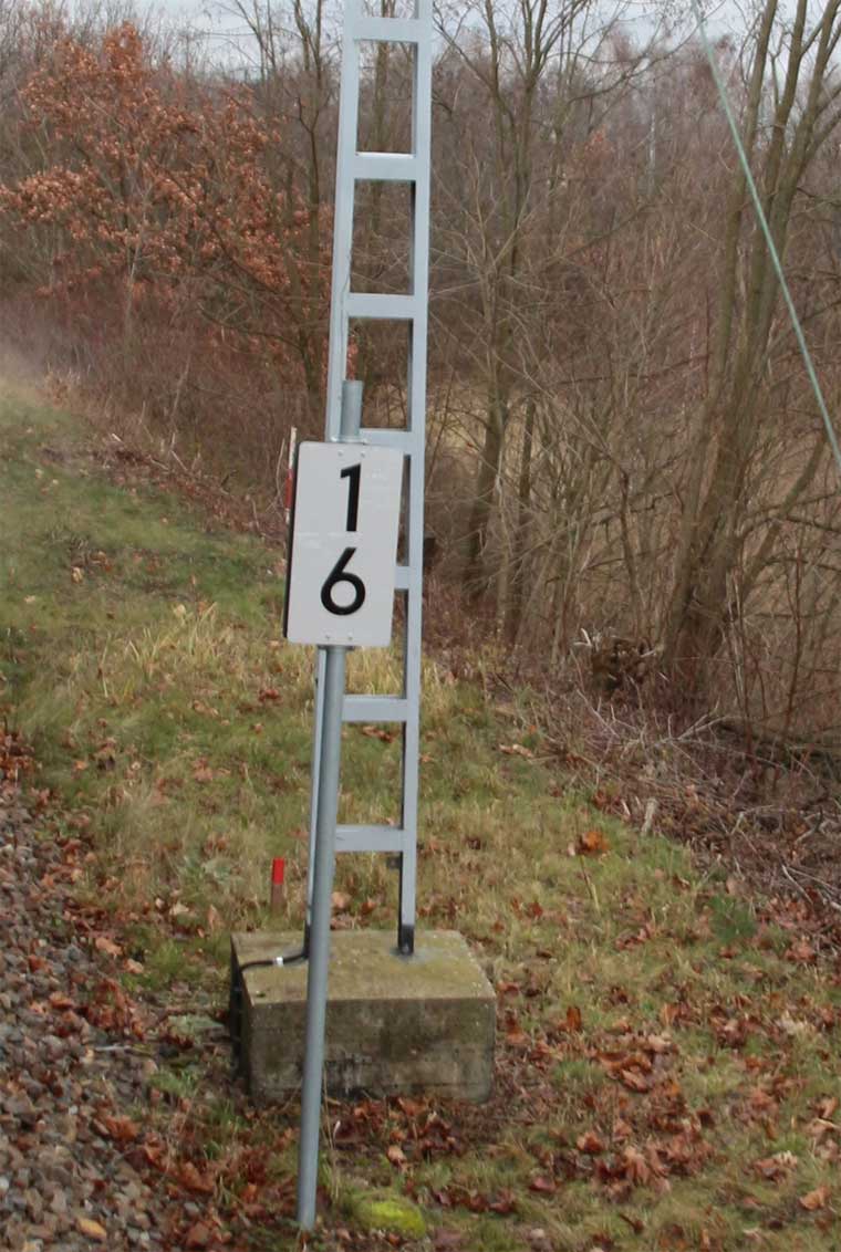 km 12,6 (Stein und Tafel) gehören zum Richtungsgleis der Görlitzer Bahn (6142)