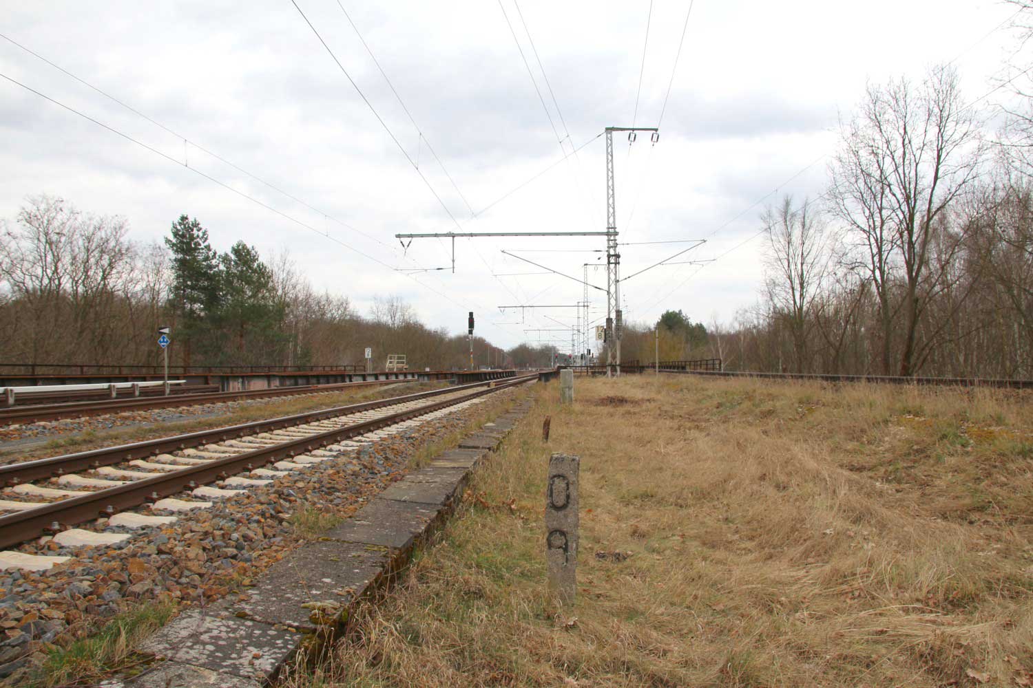 km 0,6 (Tafel) und km 0,7 (Stein) zwischen Berlin-Grünau und Abzw Grünauer Kreuz