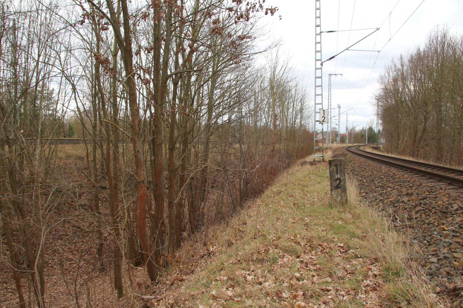 km 1,2 (Stein und Tafel) zwischen Berlin-Grünau und Abzw Grünauer Kreuz Nord - Blick