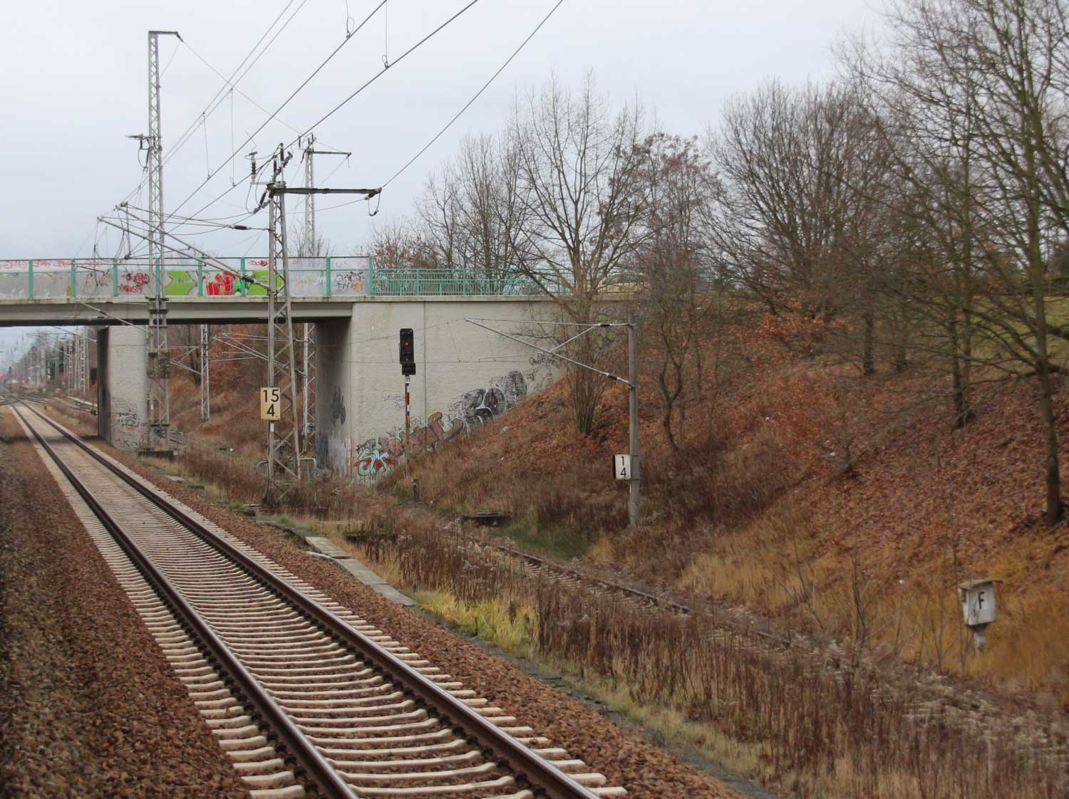 km 2,0 km 13,6 gehört zum Berliner Außenring (BAR) Foto: Matthias Manske, 13.12.2015
