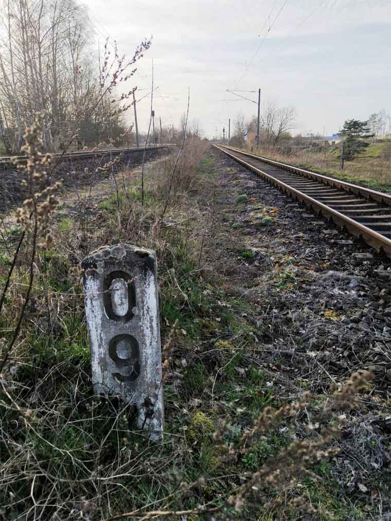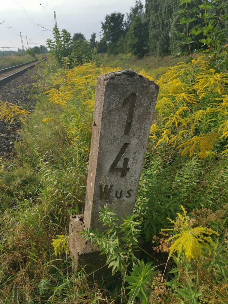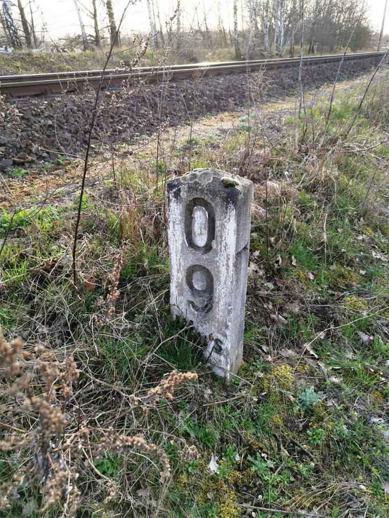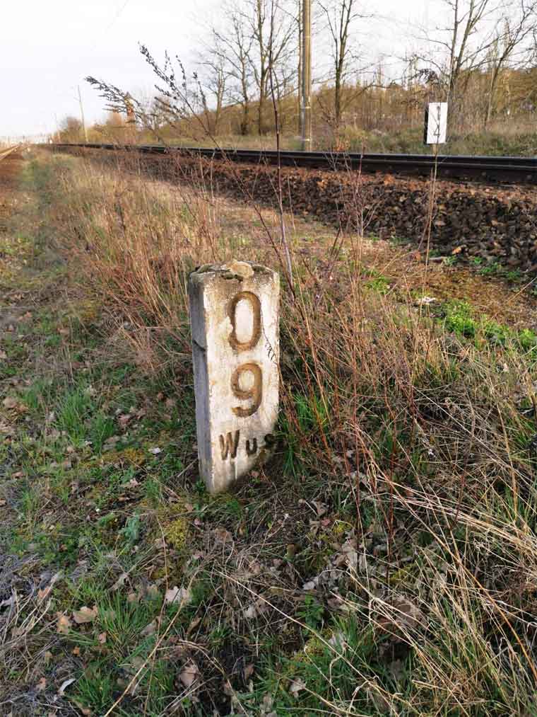 km 1,7 (liegender Stein) in Wustermark Rbf km 2,2 gehört zur Strecke