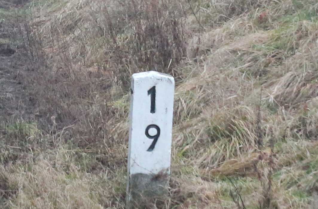 km 0,0 (Le) an der rot markierten Strecke (Einfahrten von der