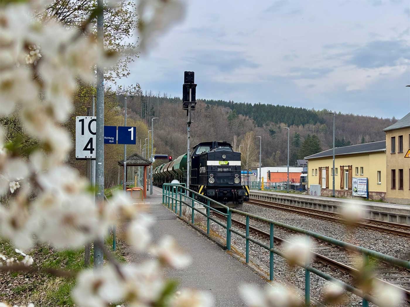 | Aue (Sachs) | 50,81 | km 10,59 der Strecke Schwarzenberg (Erzgeb) 0,162 - Aue (Sachs) 10,59 - Zwickau Hbf 37,97 (SZ) |