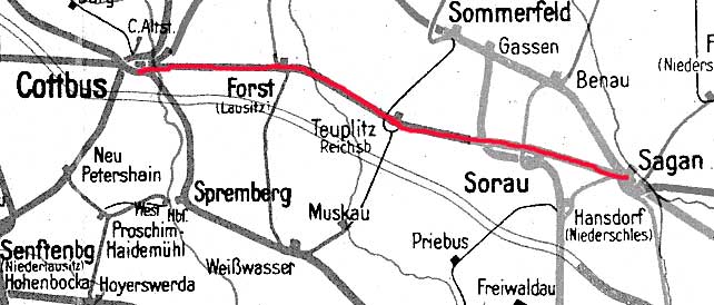 Cottbus -0,6 - Forst (Lausitz) 22,02 - Sorau 59,49 - Sagan 72,24