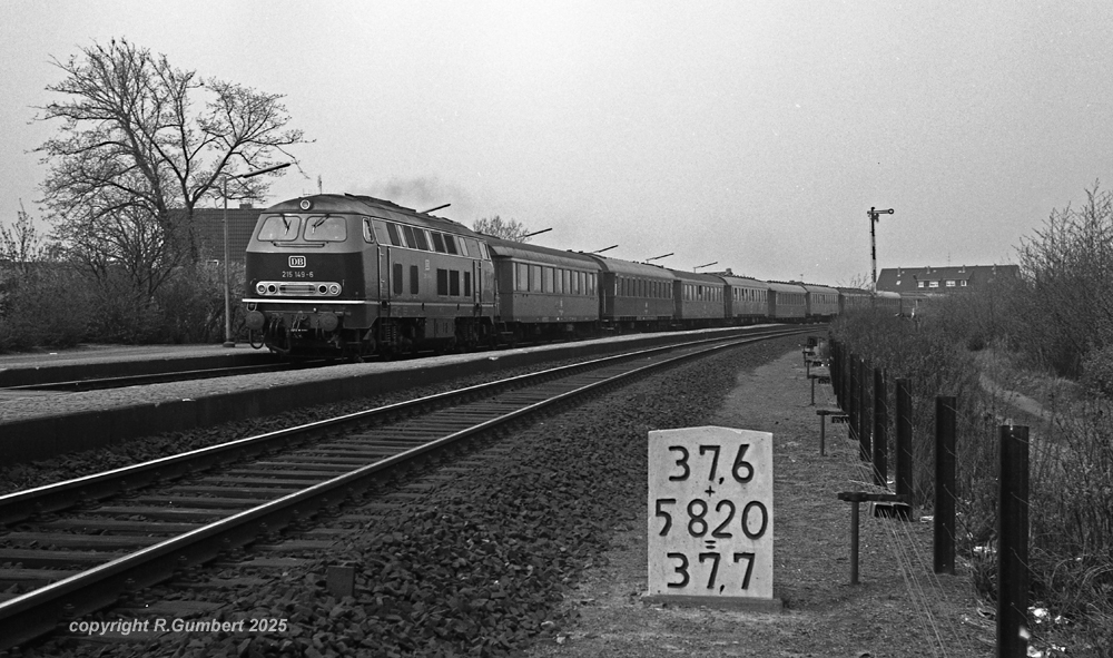Elmshorn 0,07 - Heide (Holst) 88,03 - Husum 121,84 - Lindholm 157,62 - Niebüll 162,02 - Staatsgrenze km 175,26 =