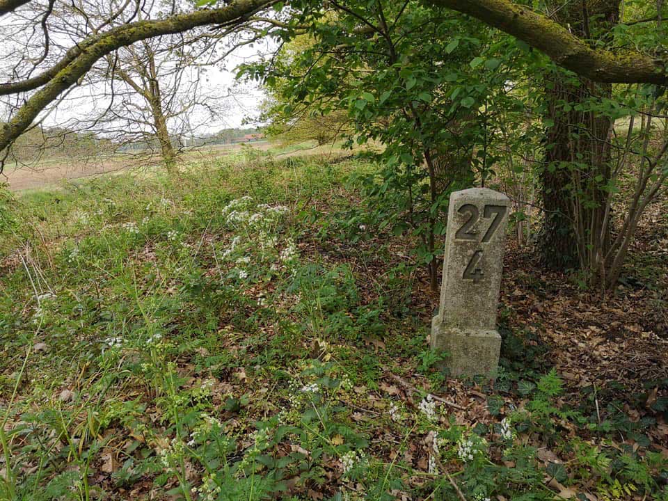 km 73,7 (rechts, verdeckt) zwischen Coesfeld (Westf) und Lutum