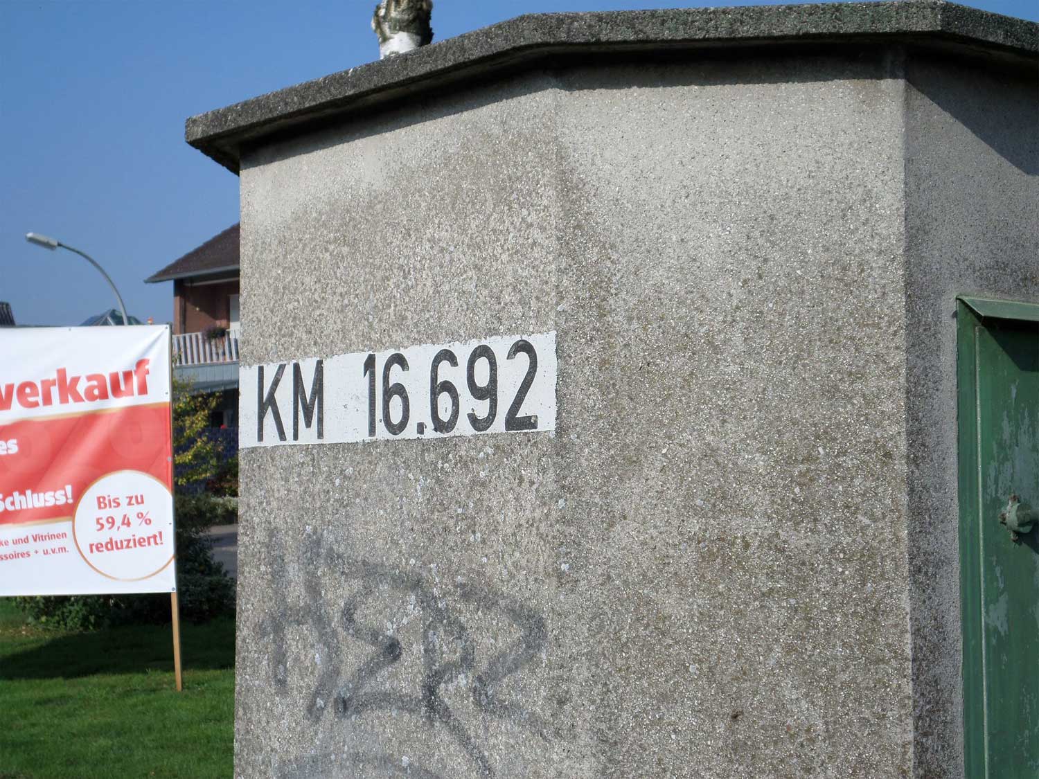 km 89,5 (Stein); km 89,6 (Tafel) und km 89,8 (Tafel) zwischen Billerbeck und Havixbeck - Blick Richtung Münster