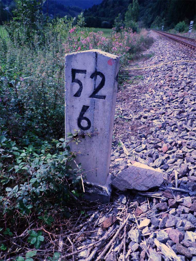 Links ist km 54,2 zu erkennen