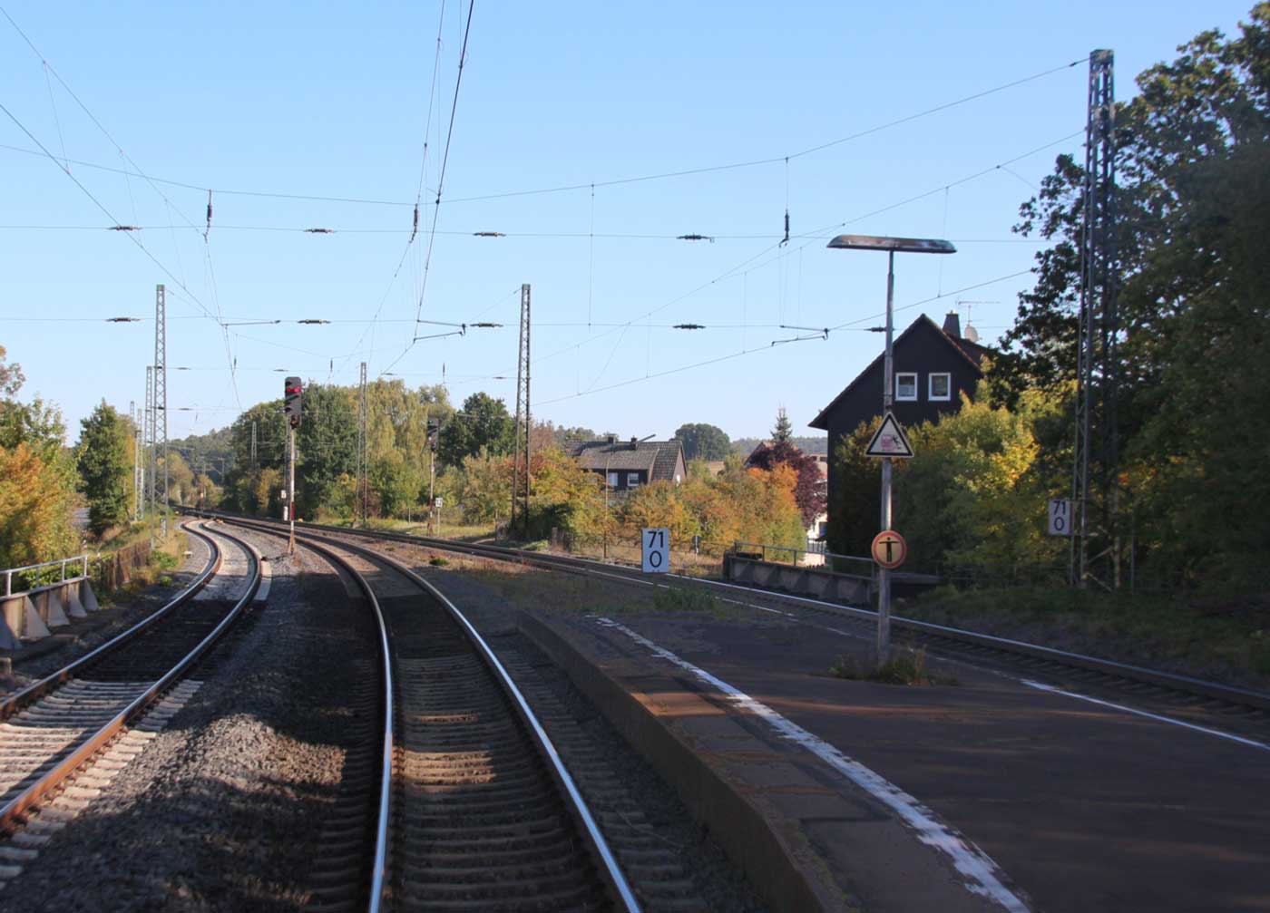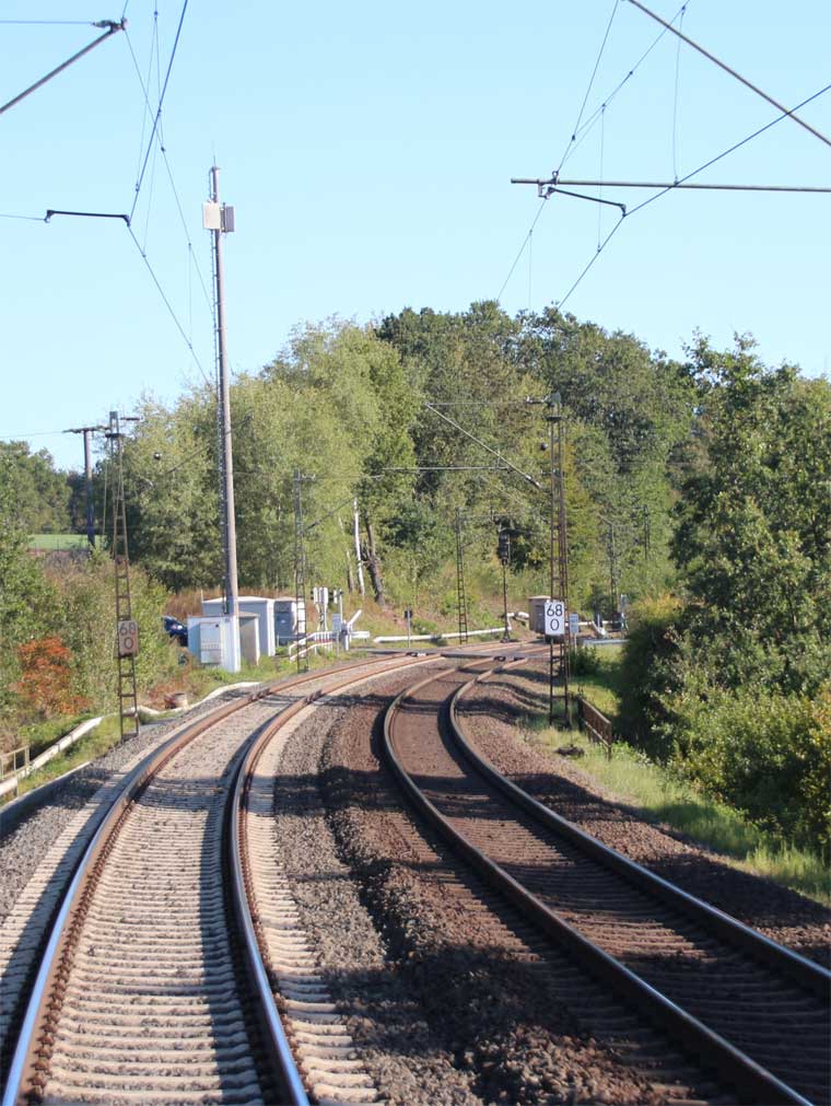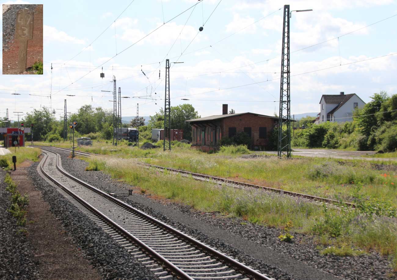| km 166,23 der Strecke Hannover Hbf 0,0 - Barnten 22,87 - (Abzw. nach Abzw. Rössing 26,68) - Northeim (Han) 88,56 - Göttingen 108,16 - Dransfeld 123,84 - Hann. Münden 142,03 - Kassel Hbf 166,23 | ||