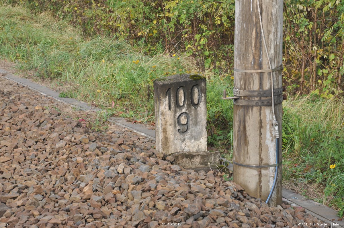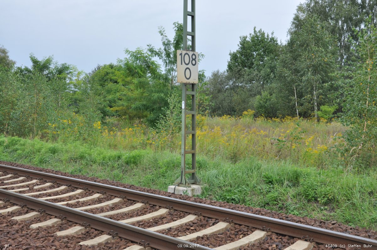 km 107,4 (Stein und Tafel) zwischen Lauchhammer Süd und Lauchhammer West