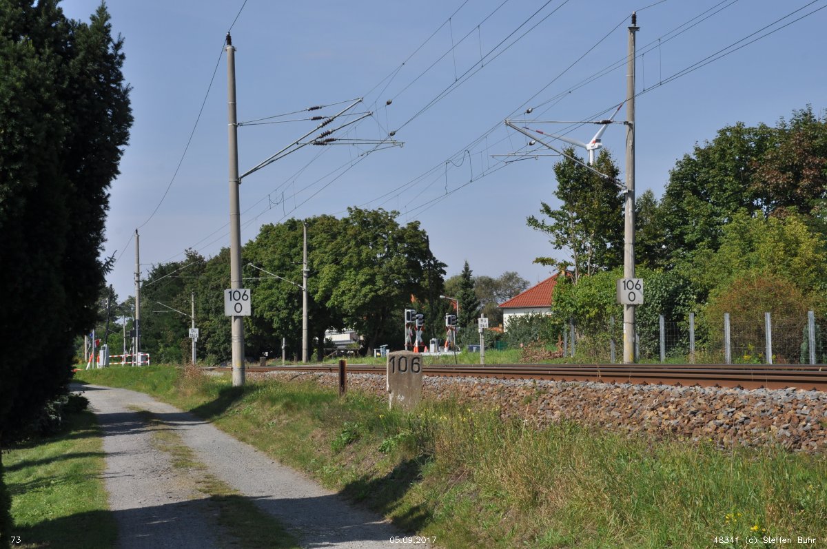 bei km 124,4 (oben) in Elsterwerda-Biehla