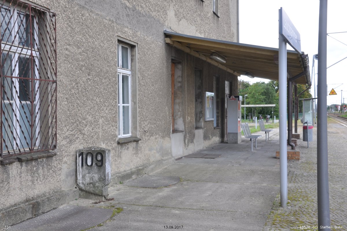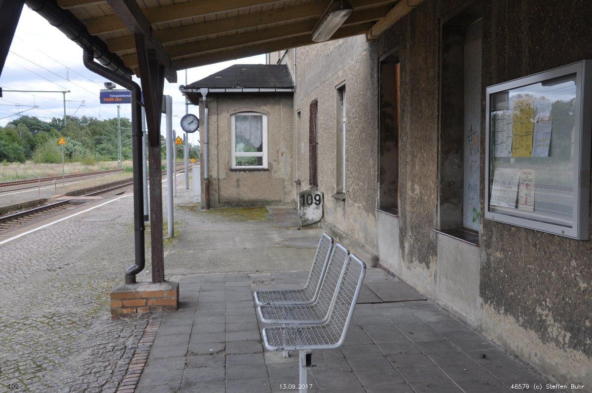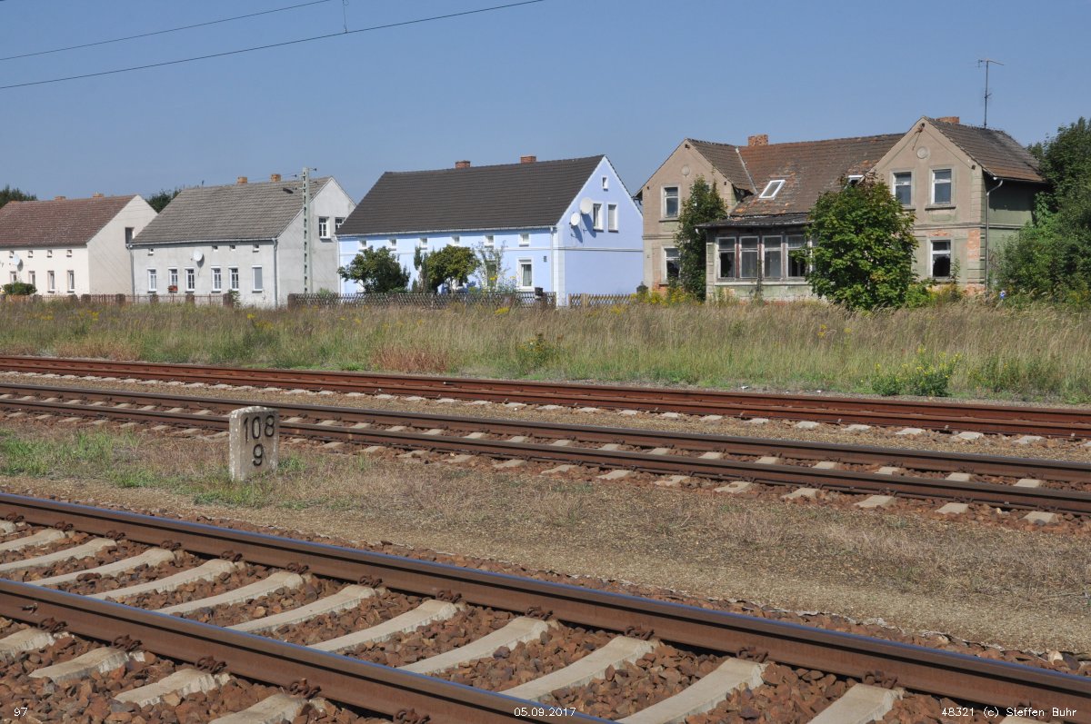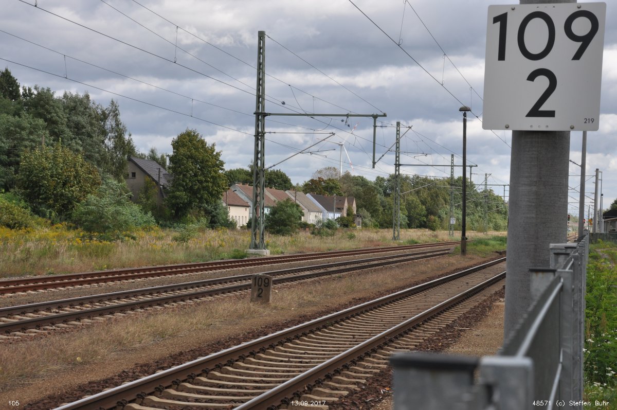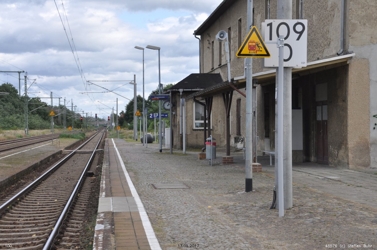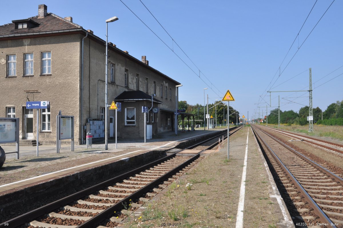 | Lutherstadt Wittenberg | 201,93 | km 94,77 der Strecke Berlin Anhalter Bf -0,07 - Jüterbog 62,82 - Bitterfeld 131,64 - Halle (Saale) Hbf 161,65 |