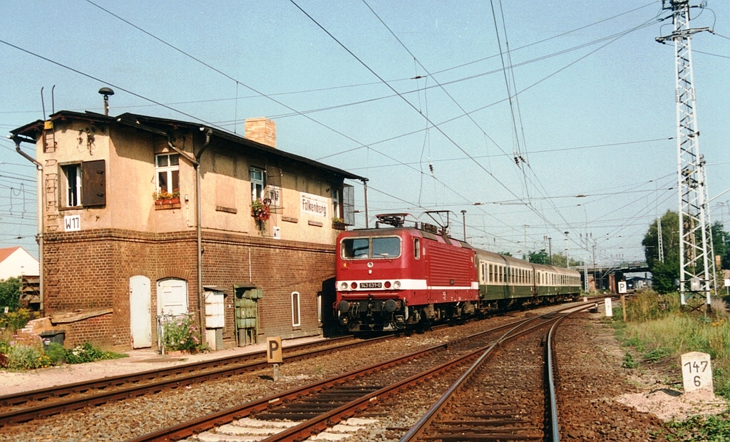 Falkenberg (Elster) (unten) - km 147,7 - RB fährt nach Riesa - 20.08.1996