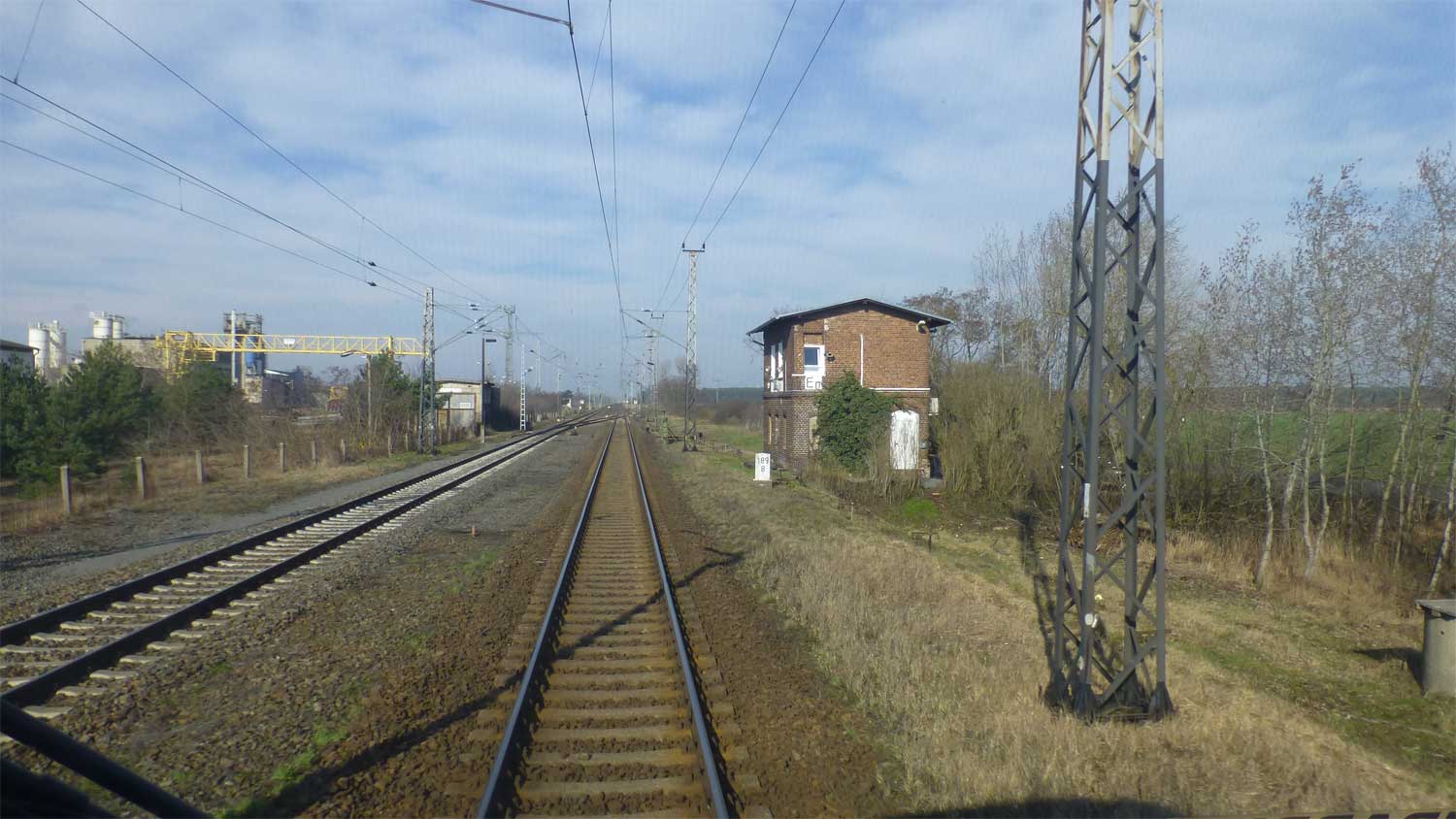 | km 0,31 der Strecke Falkenberg (Elster) 0,31 - Uckro 49,39 - Luckau 57,39 - Lübben Hp 73,2 - Beeskow 113,662 | ||