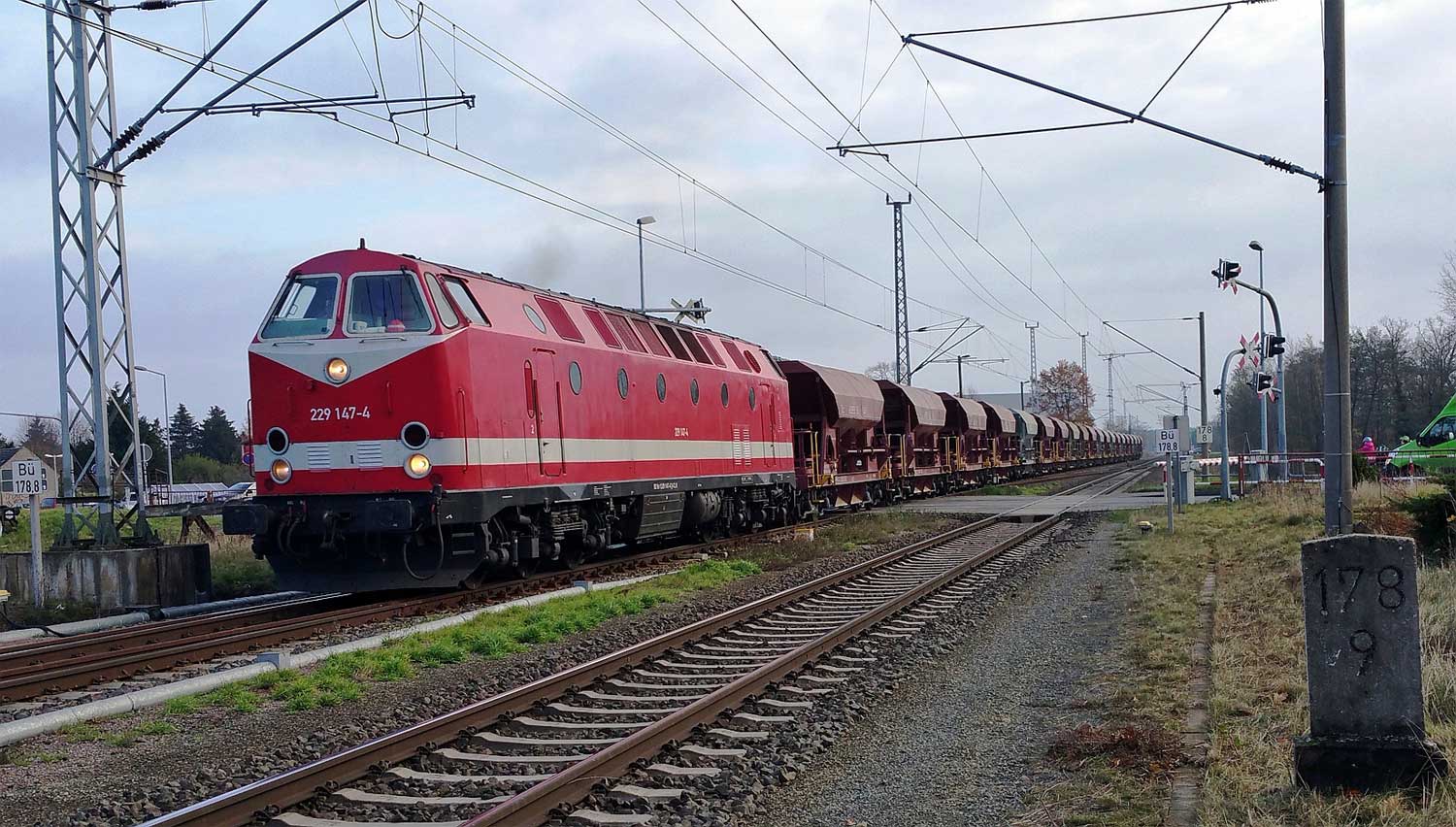 Wir sehen die Beschleunigungsphase auf 160 km/h bei der Durchfahrt in Annaburg in Richtung Falkenberg(E).