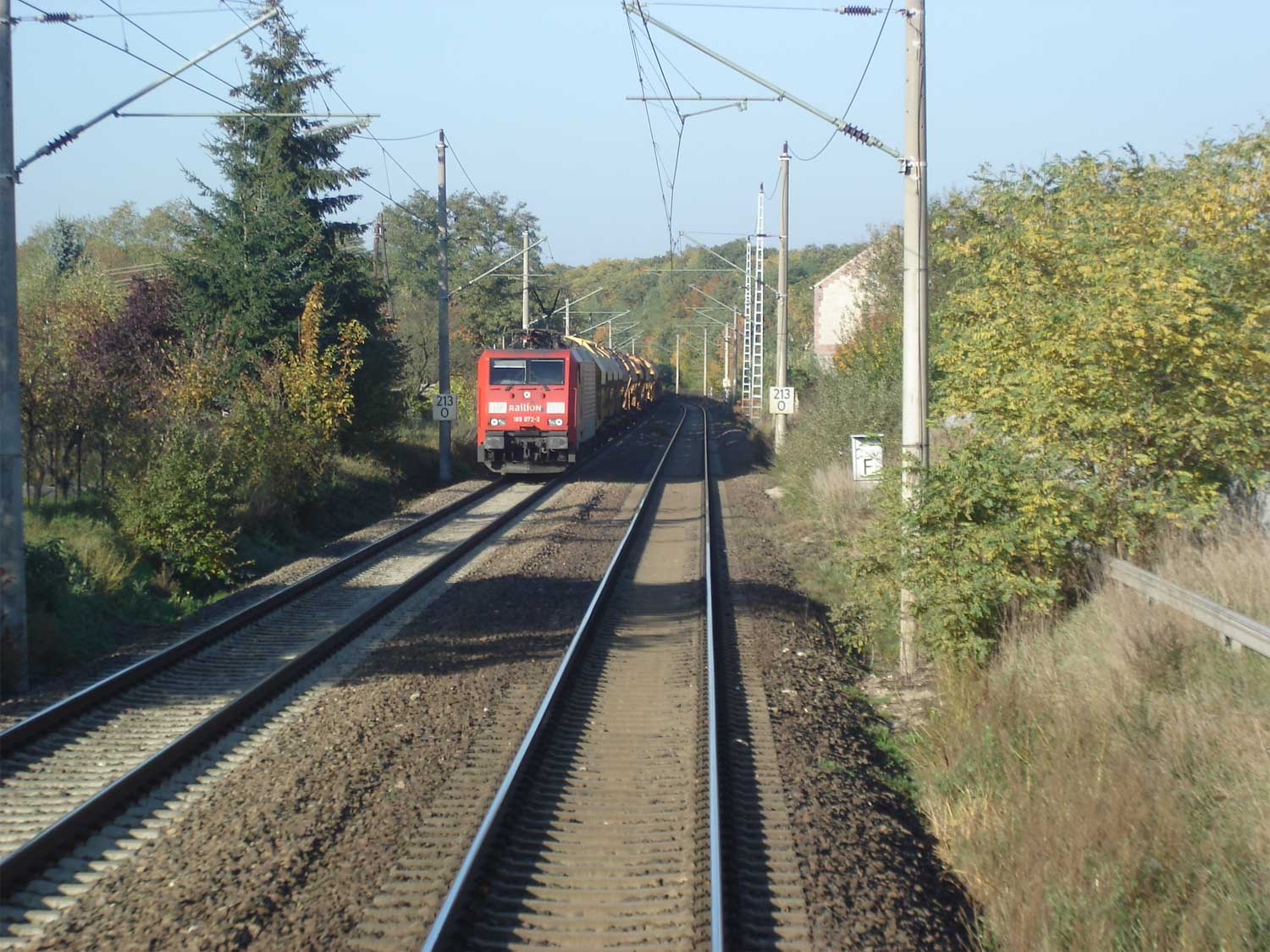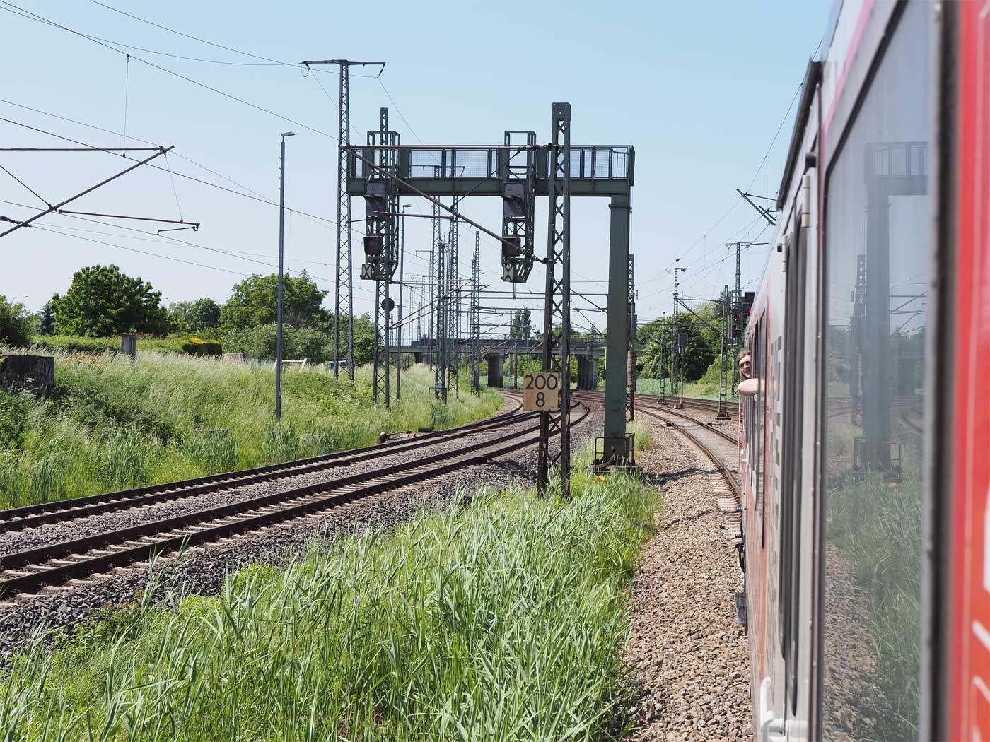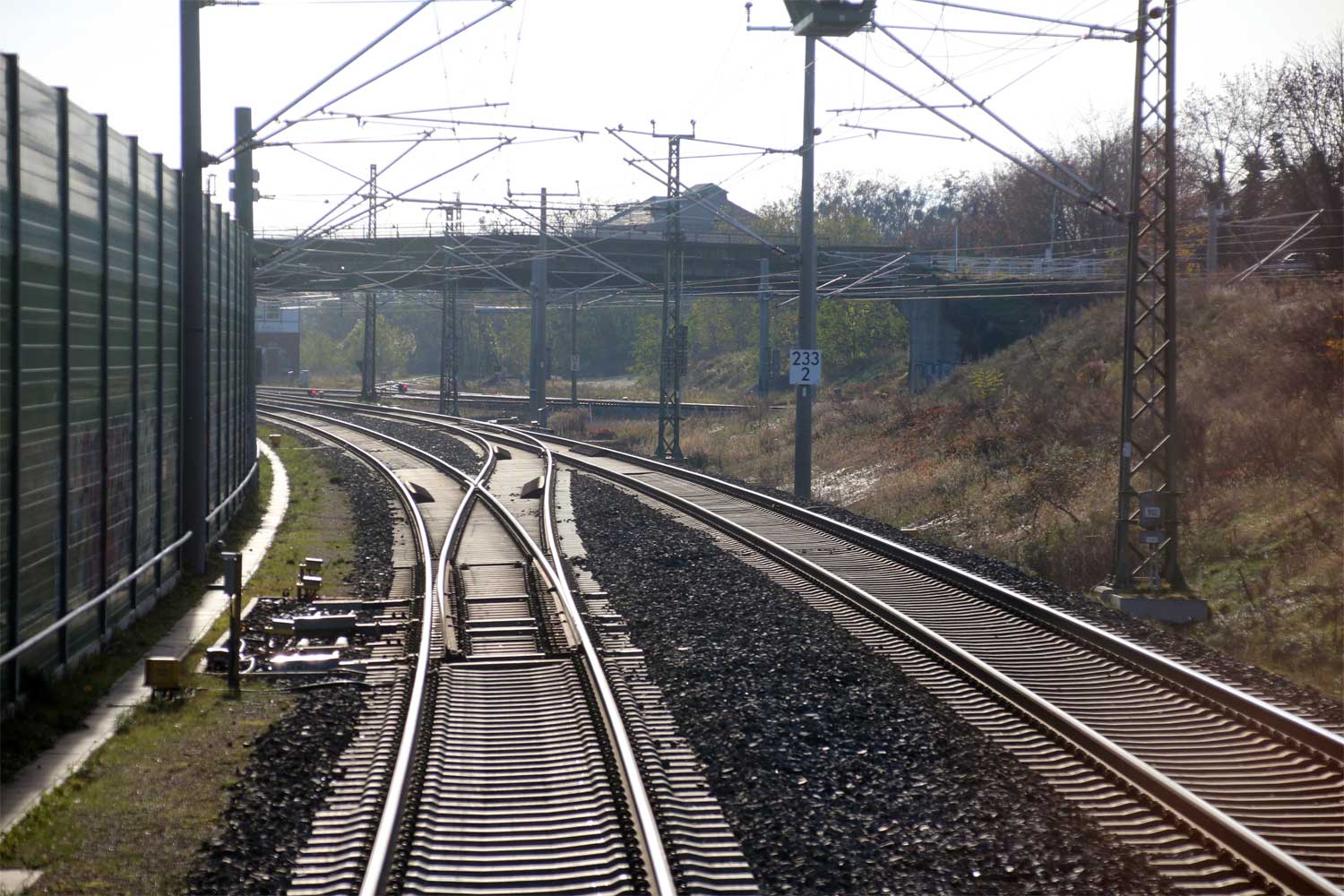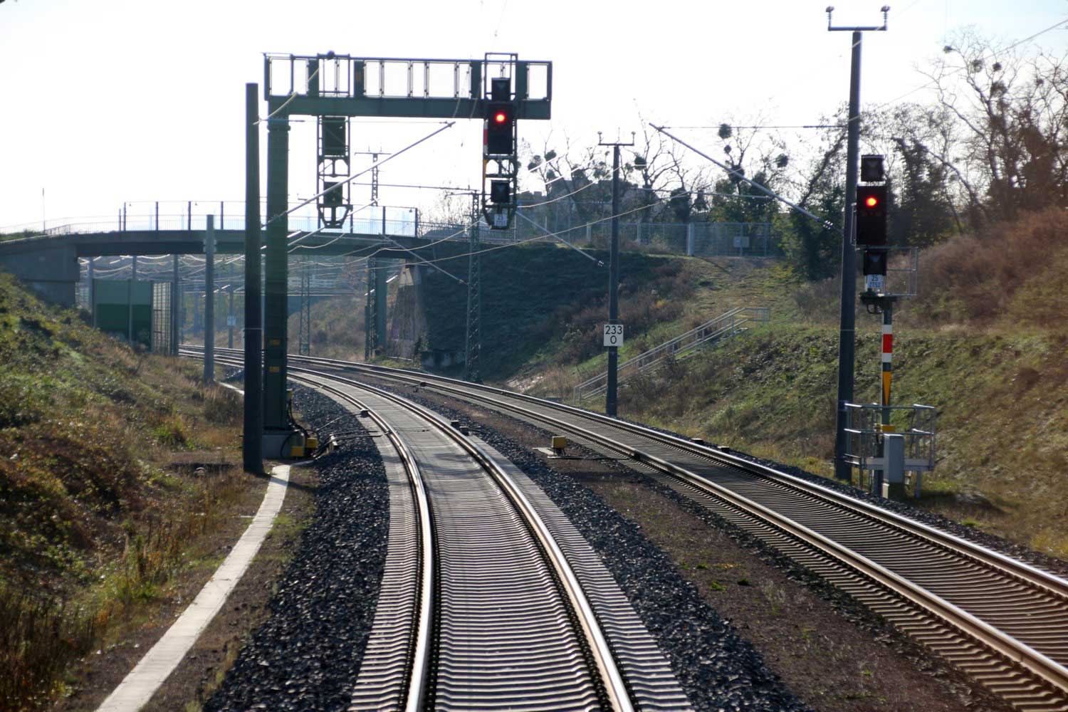 km 232,6 (hinter dem Oberleitungsmast) gehört zum Streckenast