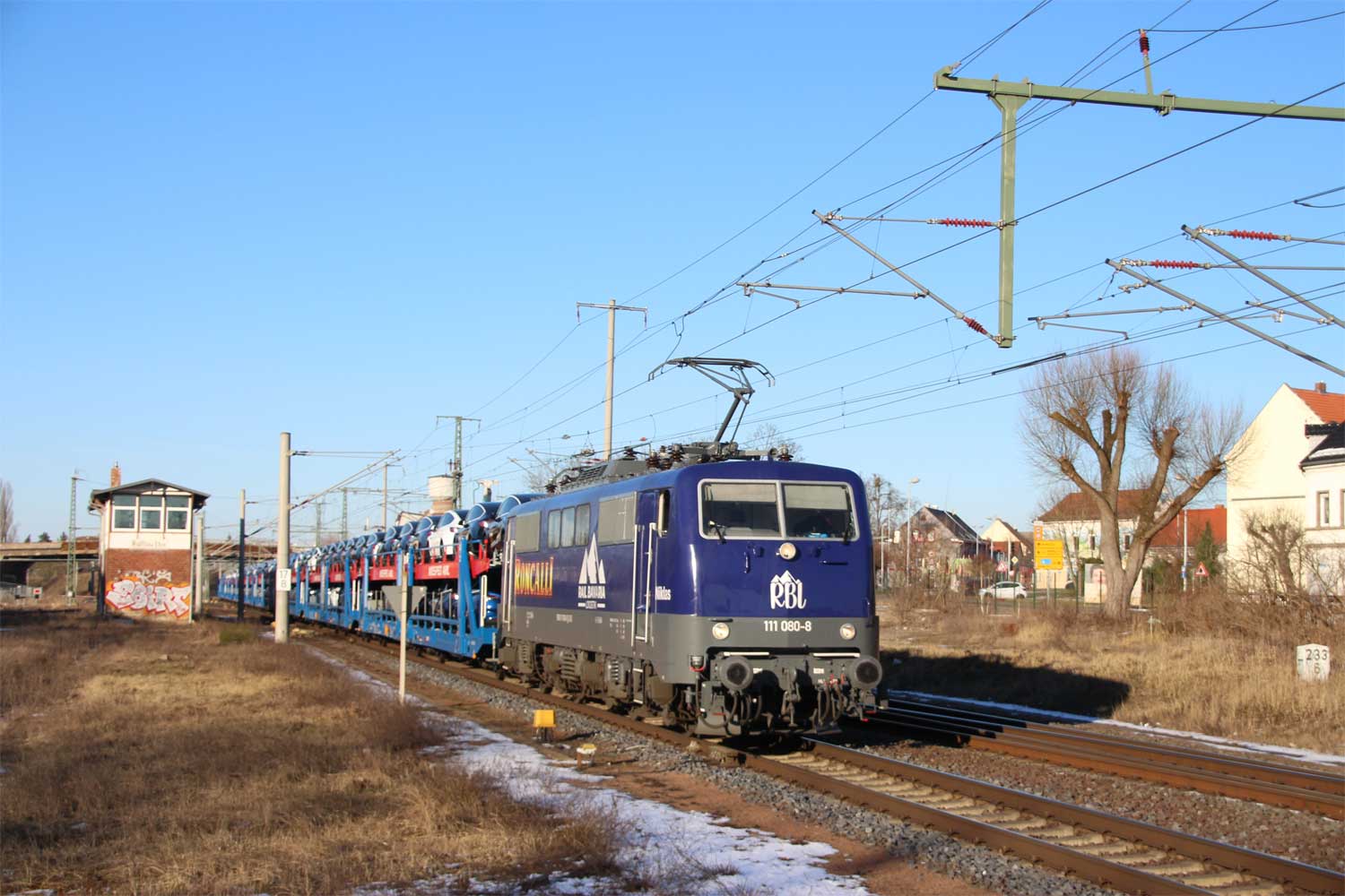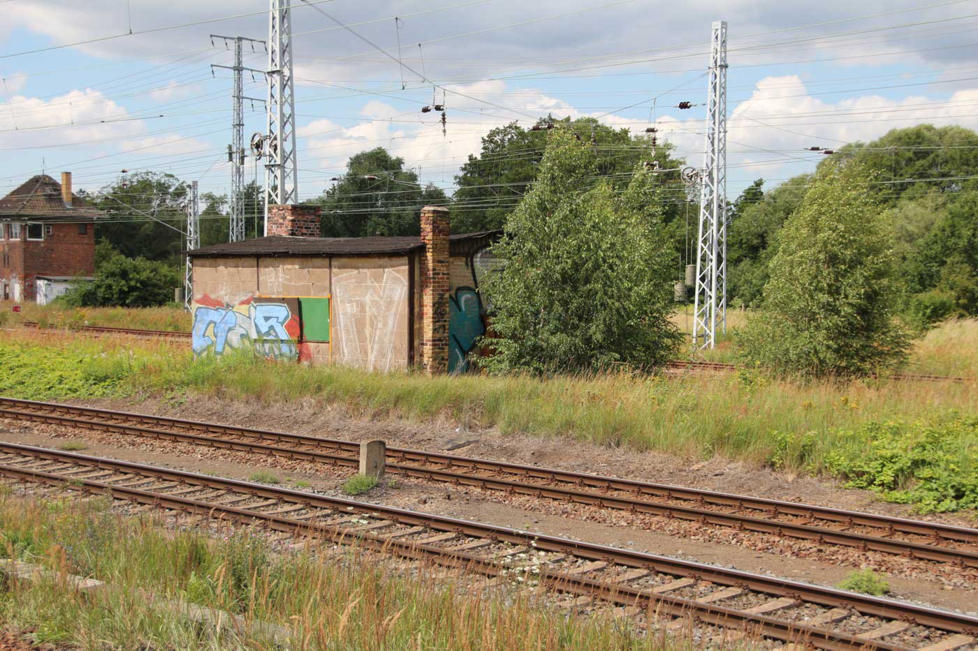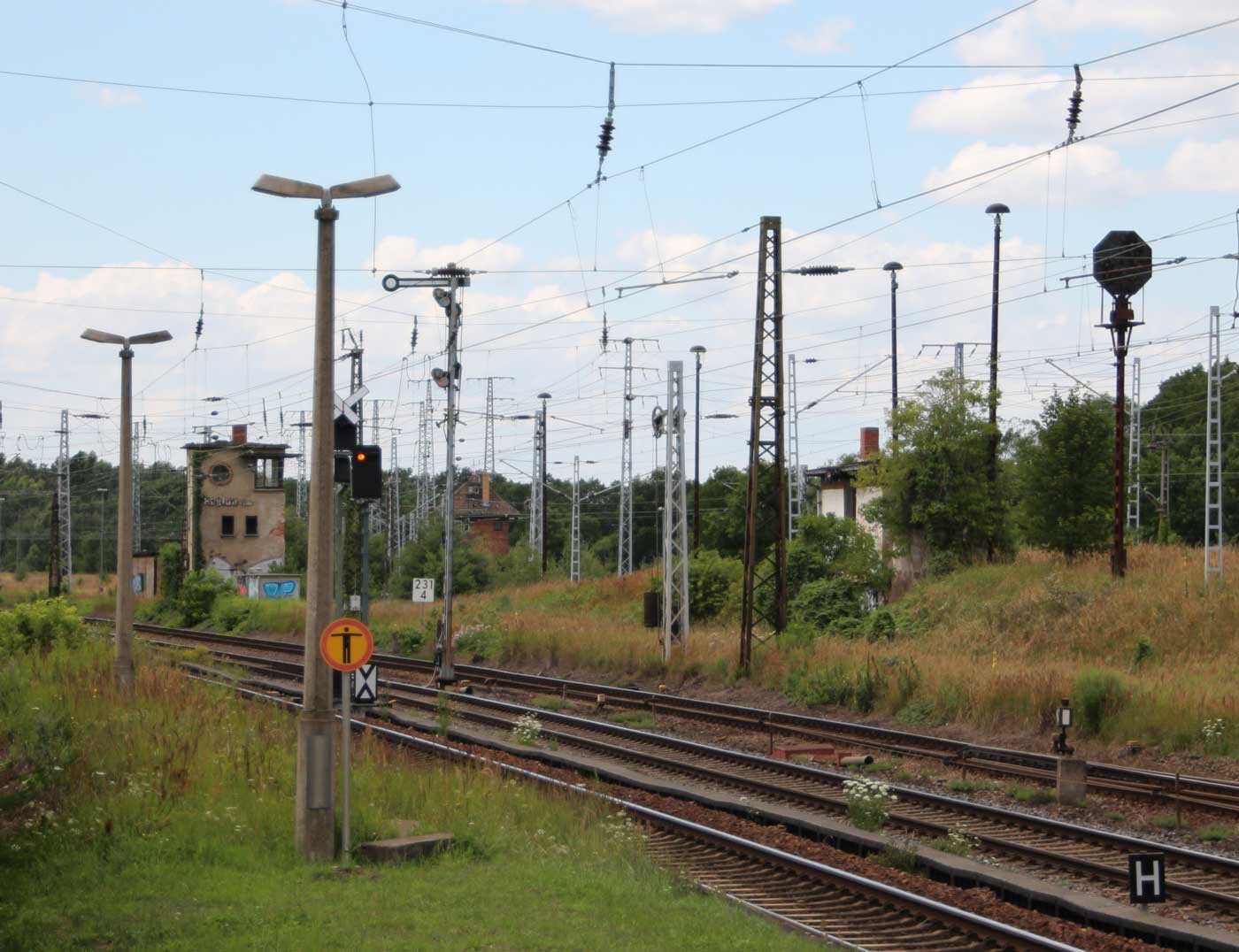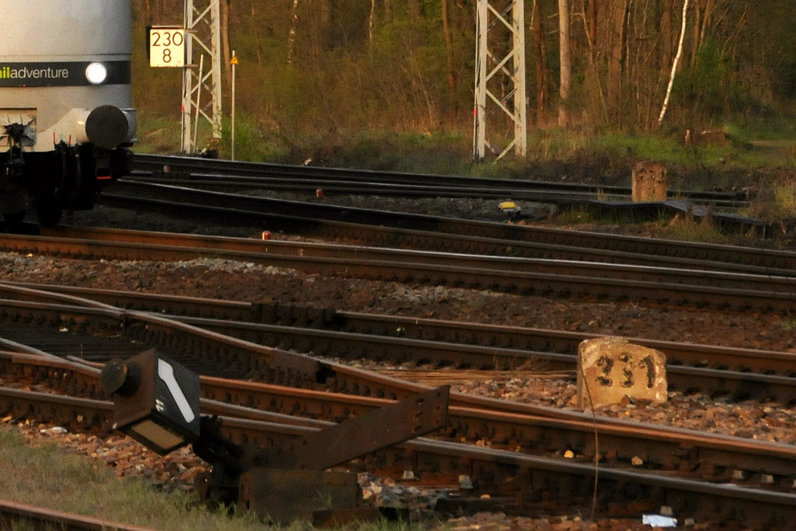 km 233,6 (rechts hinter dem Oberleitungsmast) in Roßlau (Elbe) - Detail