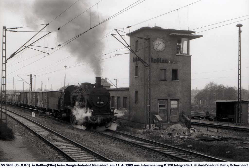 | Roßlau (Elbe) | 233,67 | km 17,94 der Strecke (Biederitz 0,68 - Güterglück 25,87 - Landesgrenze Preußen/Anhalt km 30,320) = km 0,0 - Dessau Hbf 22,96 - Bitterfeld 48,51 - Leipzig Hbf 81,26 |