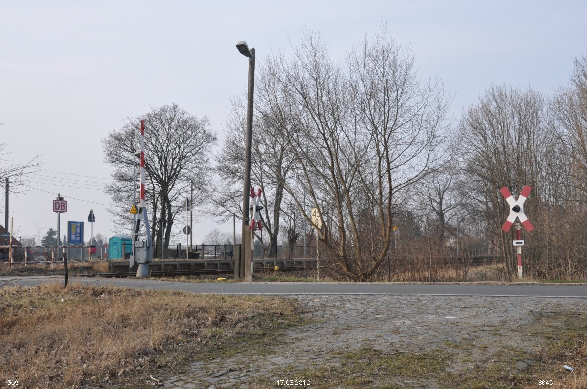 km 45,5 der Strecke Aschersleben Hecklinger Straße - Aschersleben Nord 0,0 - Schneidlingen Kleinbf 22,3 - Nienhagen Süd 45,5 [Aschersleben-Schneidlingen-Nienhagener Eisenbahn AG (ASN)] | ||