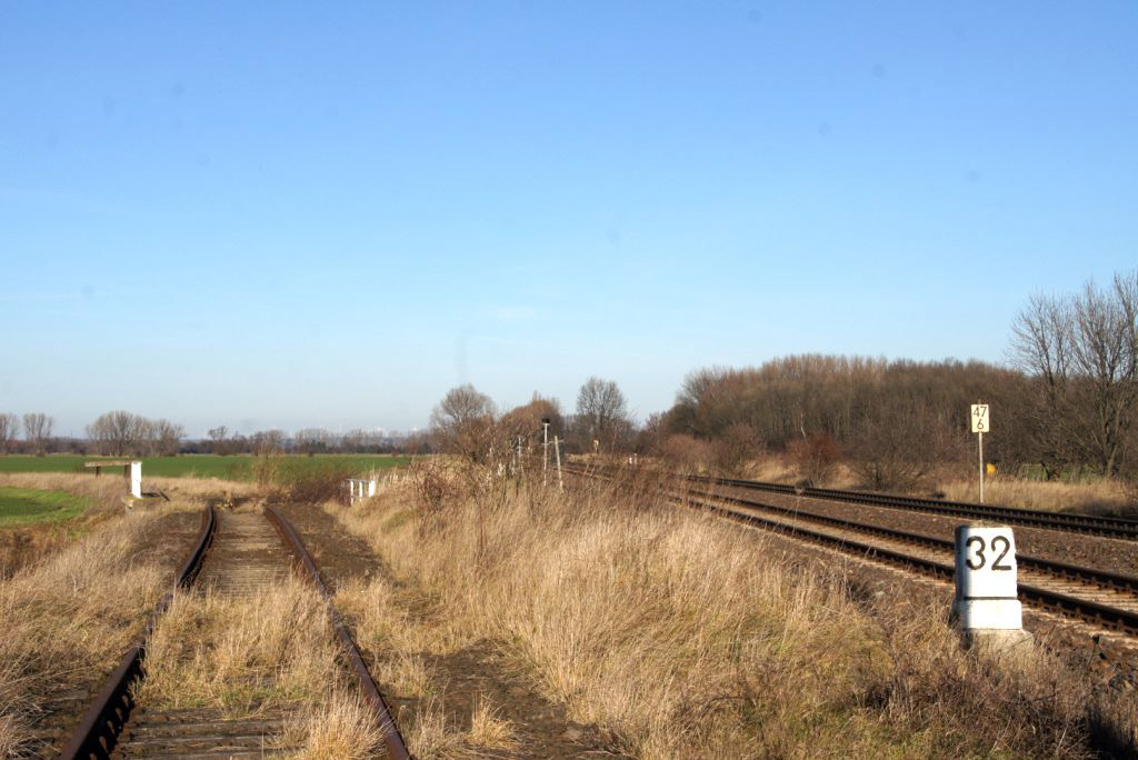 km 1,6 (rechts, Gleise fehlen) zwischen Magdeburg Hbf und Beyendorf am Abzw Wolfsfelde - Blick Richtung Thale