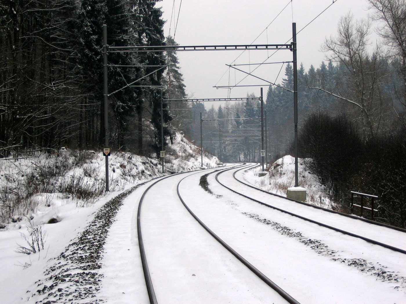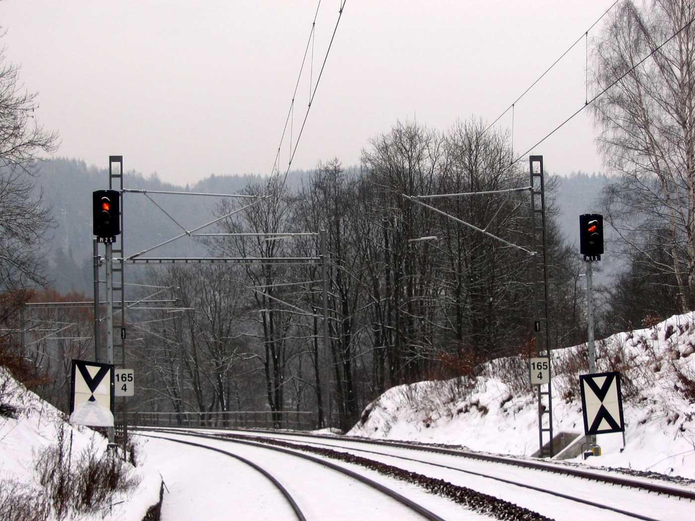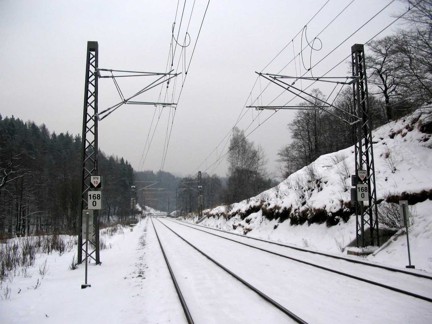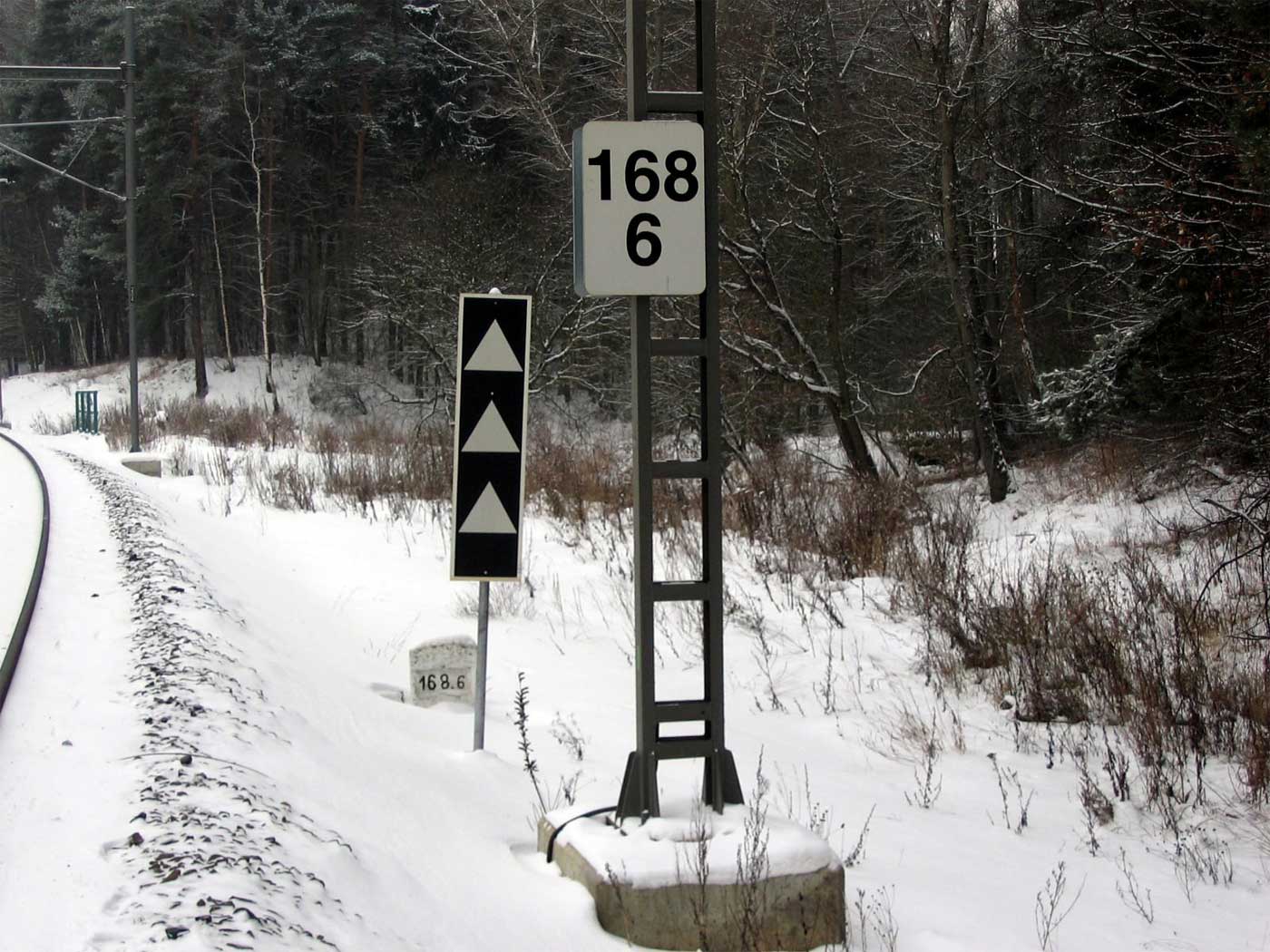 km 233,3 (Stein) und km 233,4 (Tafel) zwischen Tršnice (Tirschnitz) und Cheb (Eger) - Blick Richtung Cheb (Eger)