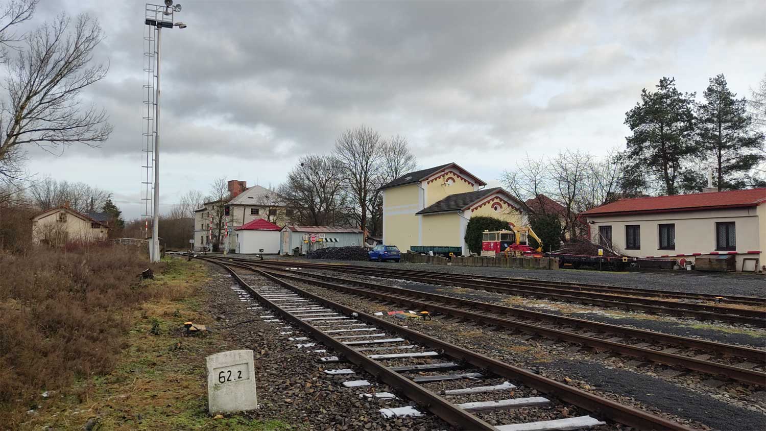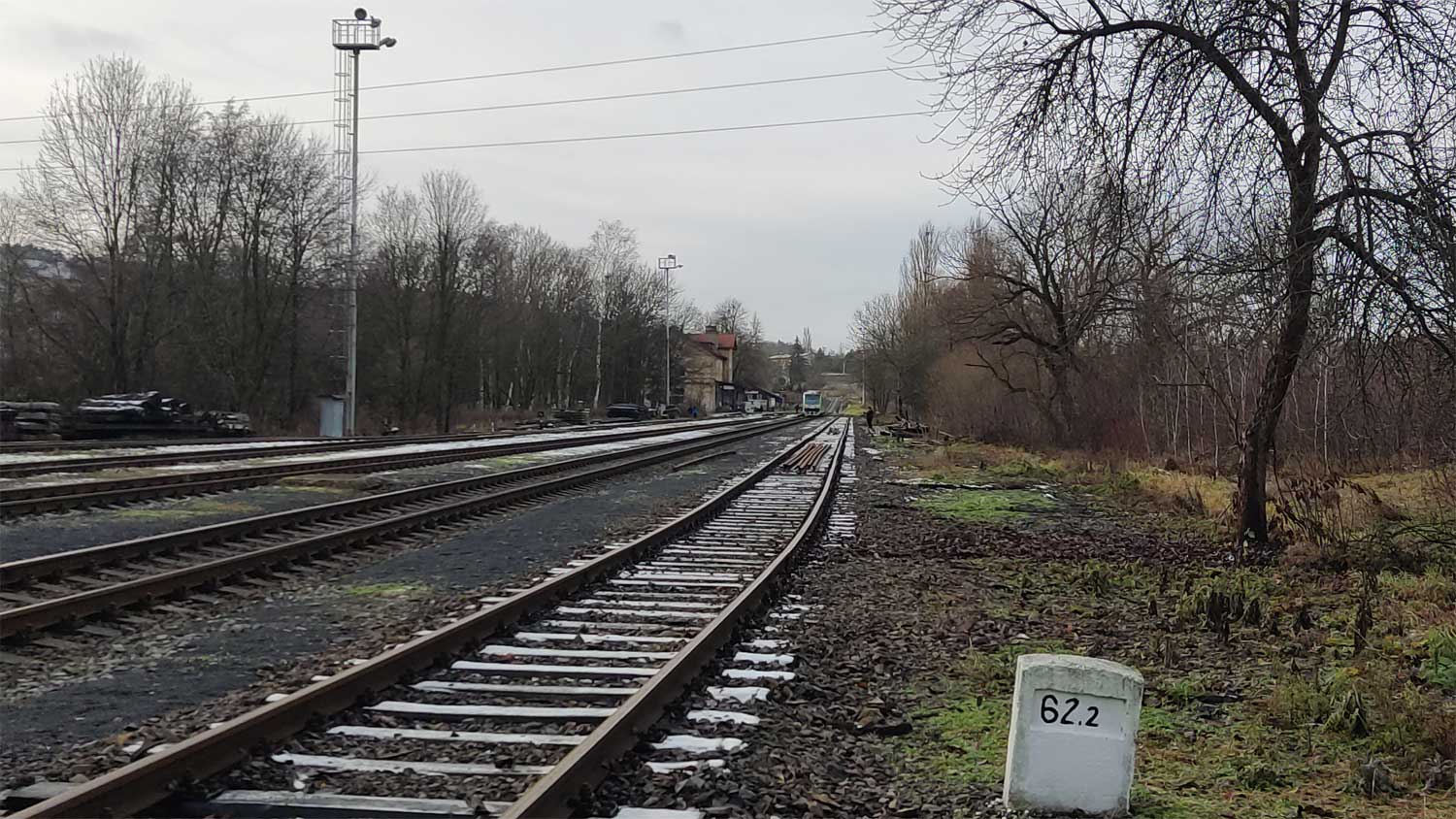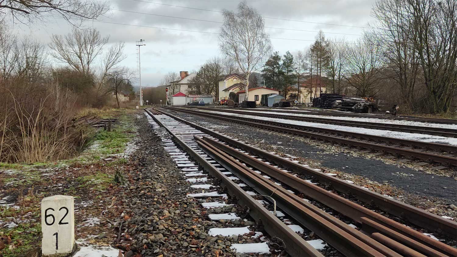 km 62,2 in Úštěk (Auscha Teplitzer Bahnhof) - Blick Richtung Liberec (Reichenberg)