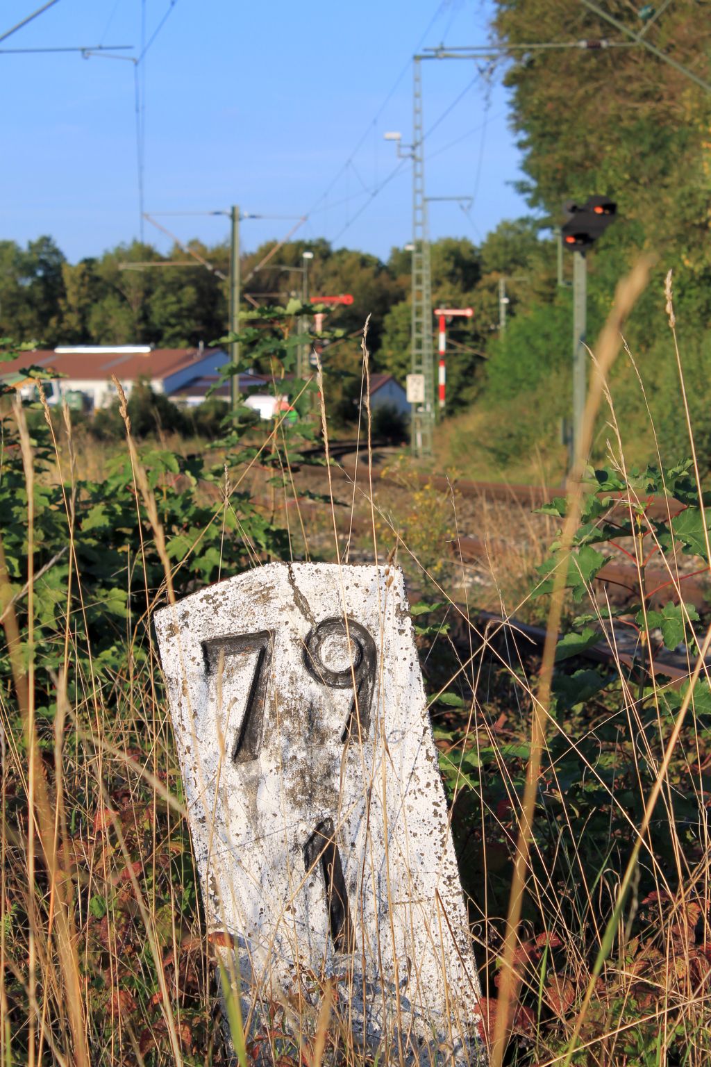 km 72,0 (Stein und Tafel) in Aalen - Blick Richtung Stuttgart