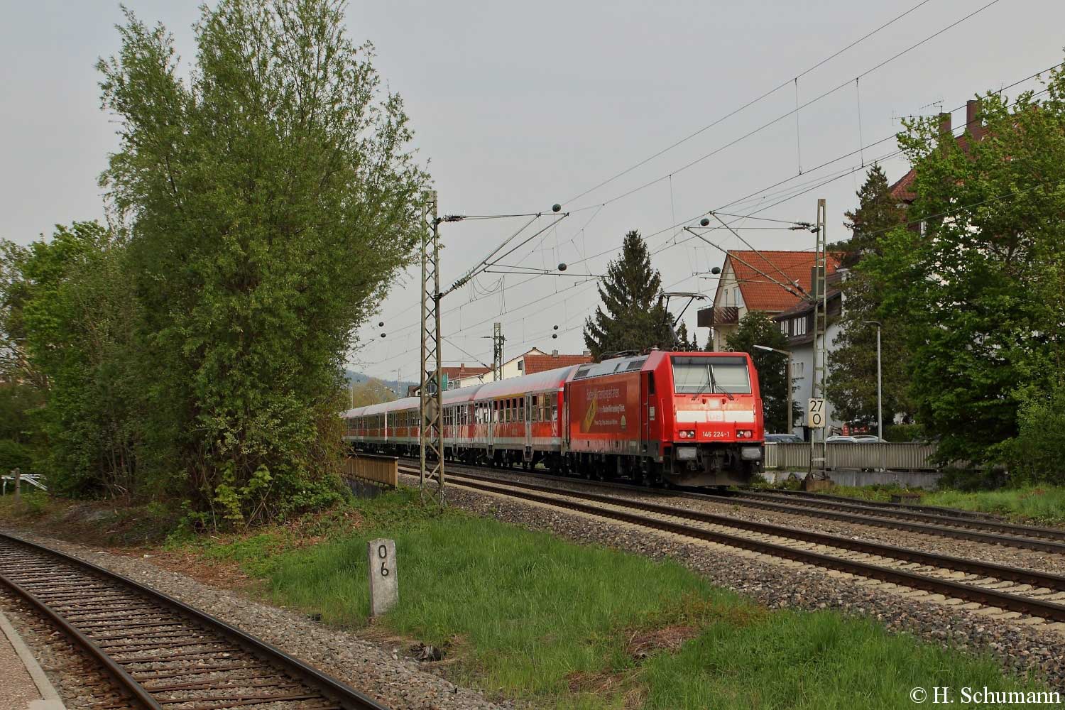 km 106,4 (Tafel und Stein) in Pflaumloch - 110 2xx mit E 3195