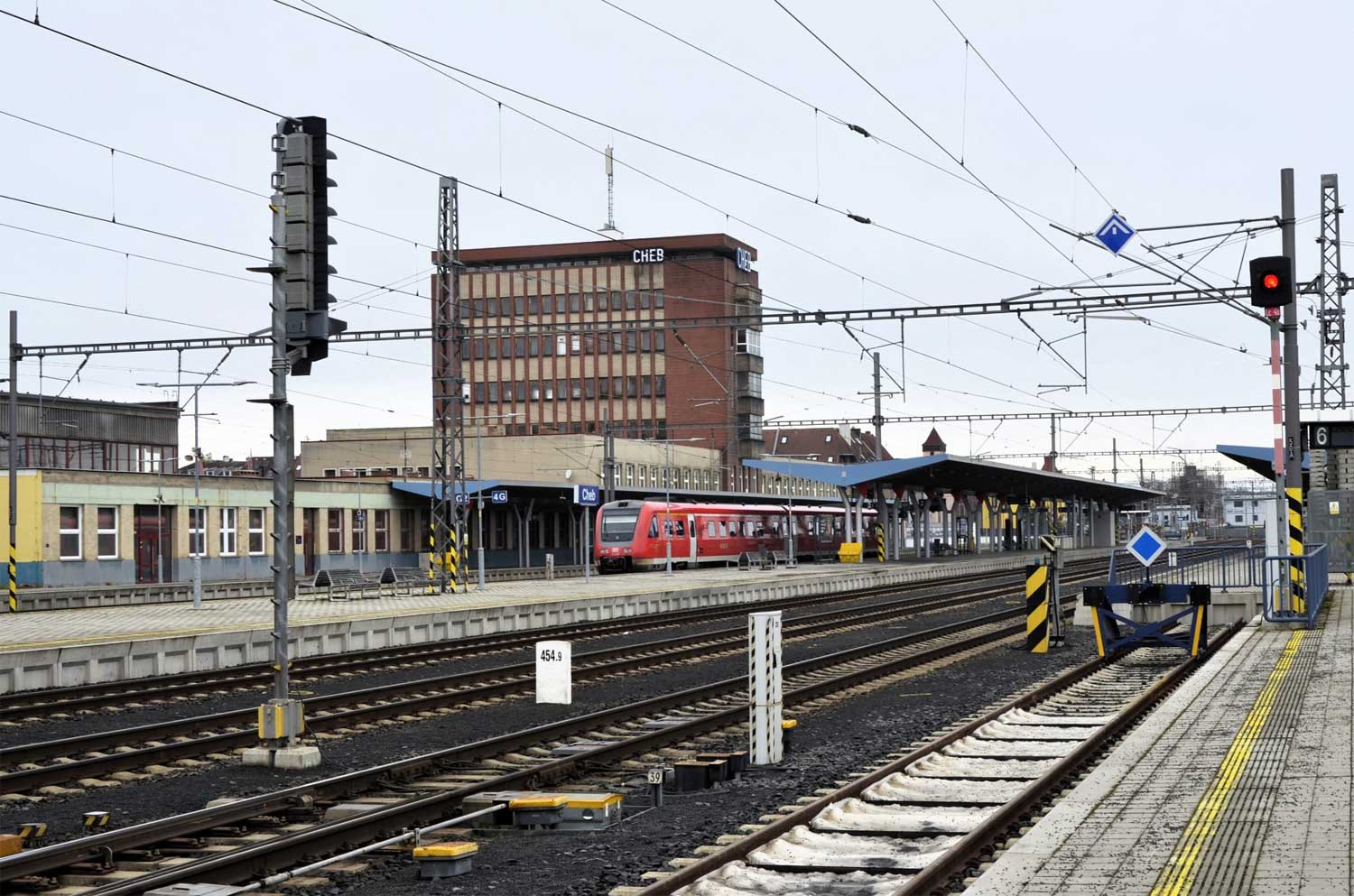 km 454,3 und weitere in Cheb (Eger) - Blick Richtung Streckenende